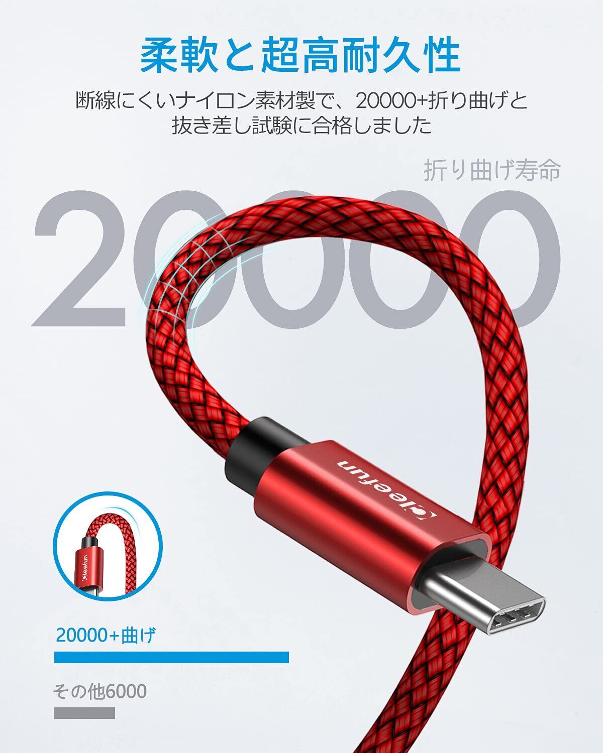 【高耐久素材】折り曲げにも強い、断線にくいナイロン編みのusbc usbc ケーブルで20000回厳しい折り曲げテストに合格します。しかもType-cコネクタは高品質アルミニウム合金を採用し、根本もしっかり補強されたので過度に曲げることで断線や脱線を防ぎ、一般的なケーブルより5倍以上長持ちします。