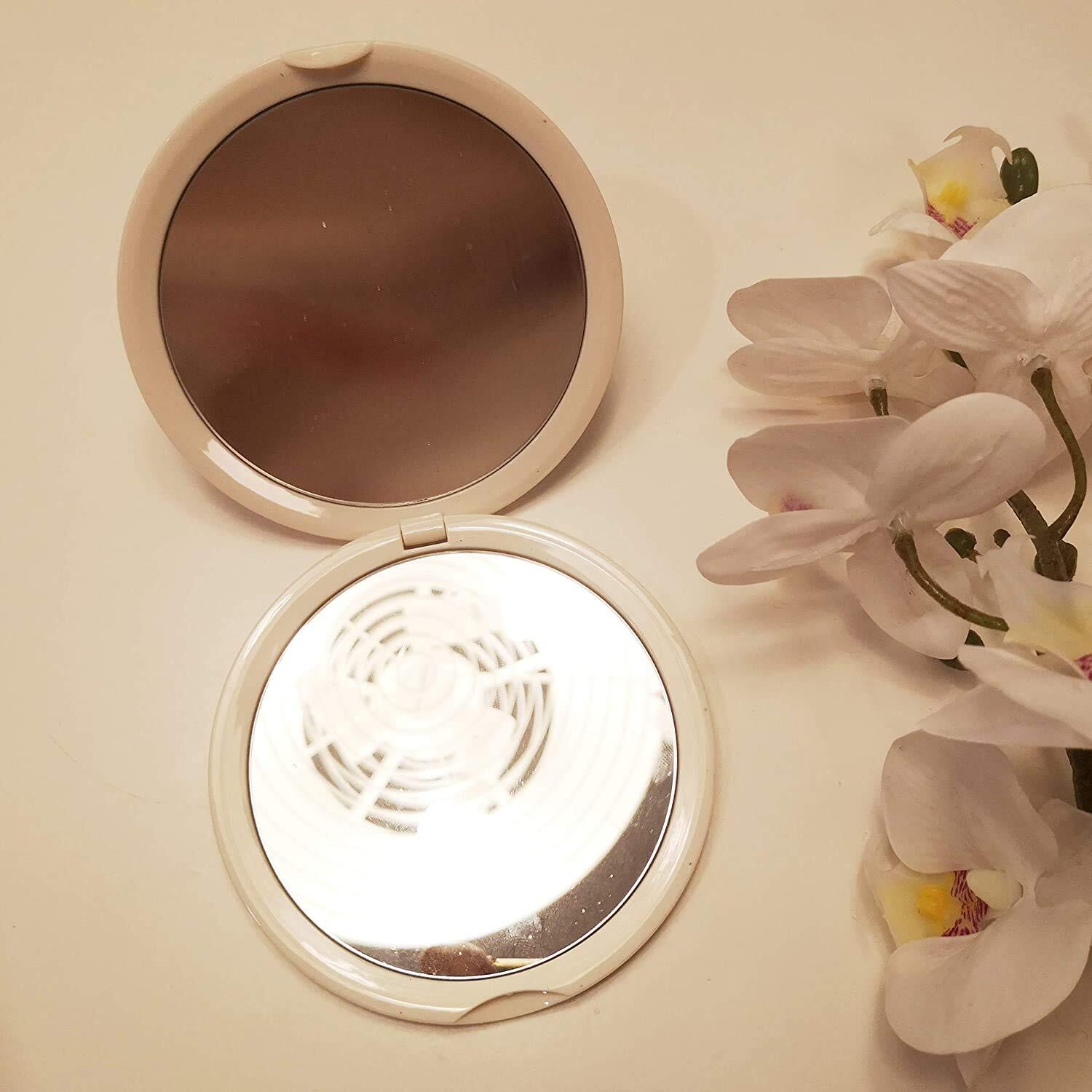 コンパクトミラー 化粧鏡 10倍拡大鏡 折りたたみ鏡 手鏡 両面鏡 角度調整可 超軽量(ホワイト)