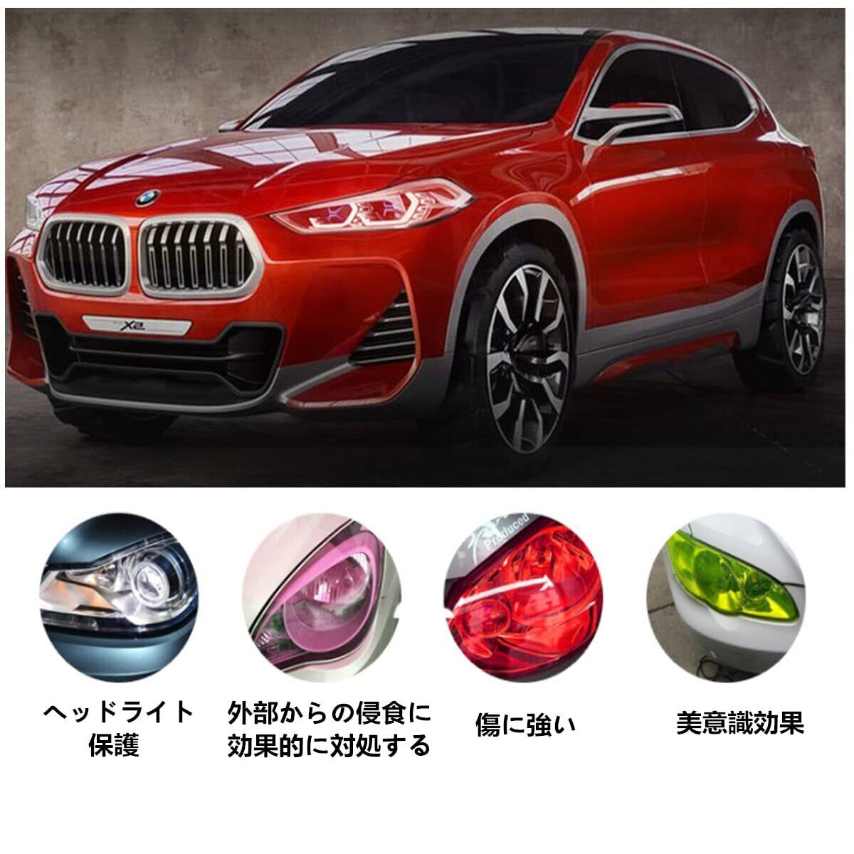 材質:PVC材質で良い透光性・耐候性・ストレッチ性に優れた素材となっております。車だけでなくオートバイのライトも使用できます。サイズ:30*120cm。