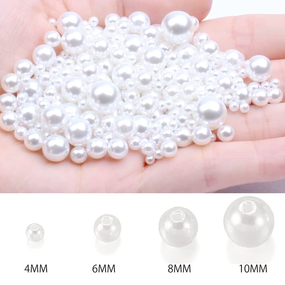 サムコス 樹脂パール パールビーズ 約600粒セット ラウンド 丸玉 穴付き 手芸用品 縫製用 手作り DIY 材料 工芸品の装飾 ジュエリー用 ハンドメード ネックレス イヤリング 4サイズ (4サイズ 約600粒(ホワイト))