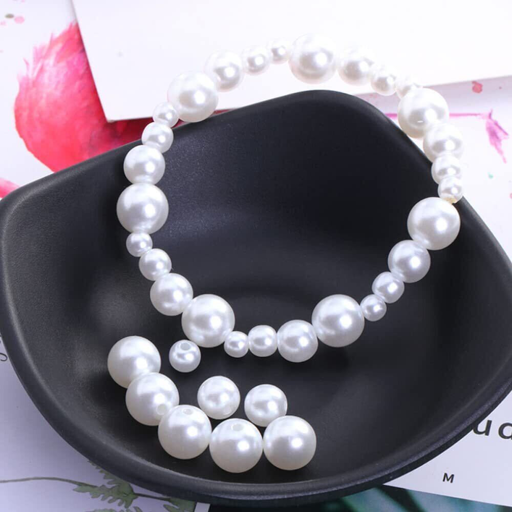 【新着商品】サムコス 樹脂パール パールビーズ 約600粒セット ラウンド 丸玉 穴付き 手芸用品 縫製用 手作り DIY 材料 工芸品の装飾 ジュエリー用 ハンドメード ネックレス イヤリング 4サイズ (4サイズ 約600粒(ホワイト))