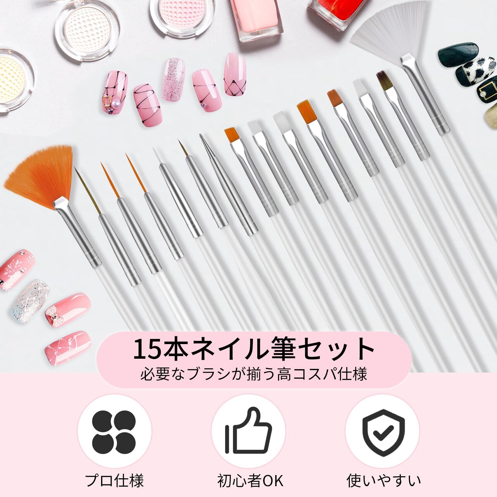 プロ向けネイルブラシ15本セット:ネイルブラシ セットは、初心者からプロフェッショナルまで、すべてのネイルアート愛好者に対応する15本セットです。様々な形状とサイズのジェルネイル筆が揃っており、細かいラインから大胆なデザインまで対応できます