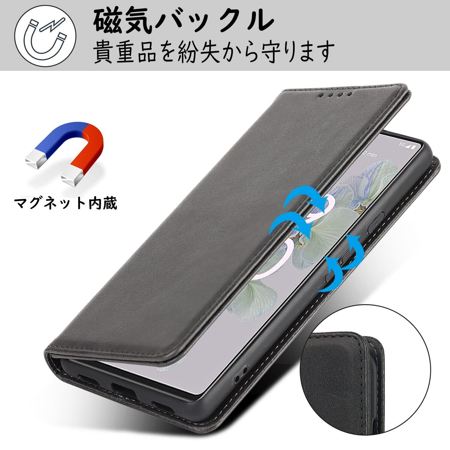 【Hamany】 Google pixel 6a ケース 手帳型 カード収納 耐衝撃 耐久性 耐摩擦 ピクセル6a スタンド機能 マグネット式 レザー カバー -紳士黒