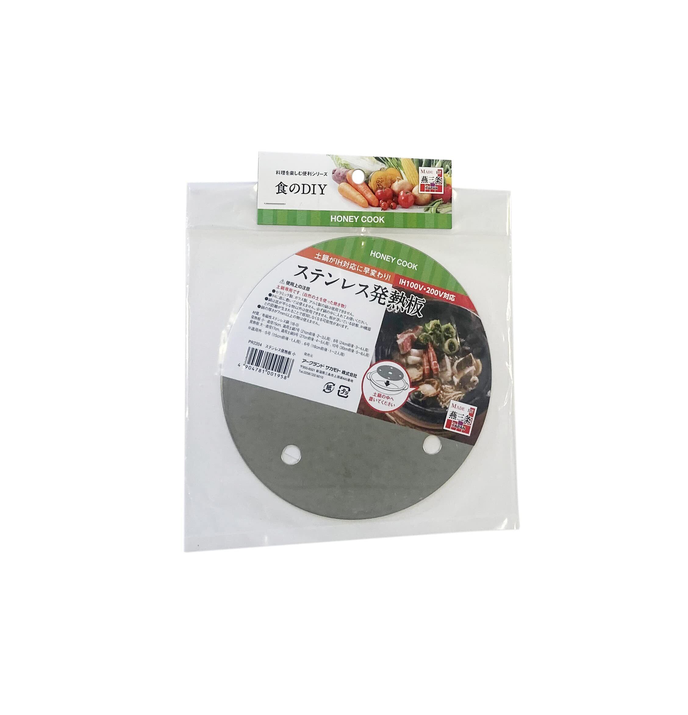 ●家庭の土鍋がIH対応に早変わり。●IH100V 200Vに対応。●陶器製土鍋、タジン鍋の中央に置くと電磁調理器に対応します。●製品サイズ/縦:150mm横:150mm高さ:1.5mm●製品重量:132g●パッケージサイズ/縦:150mm横:150mm高さ:1.5mm●パッケージ重量:140g●材質:有磁性ステンレス鋼(18-0)●サイズ:直径15cm(8号用)●対応V:IH100V 200V