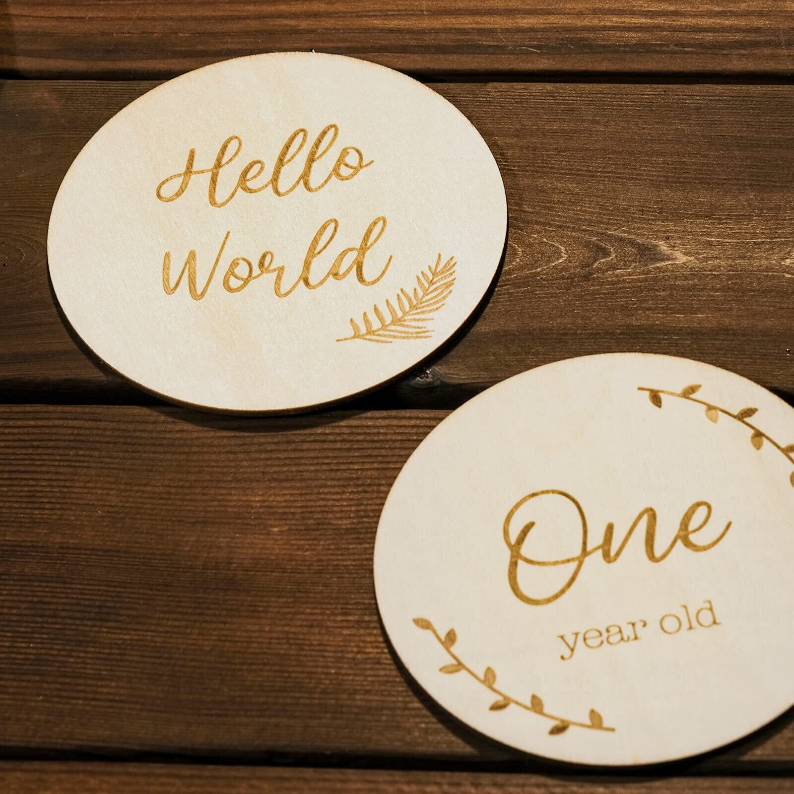 Oaec 月齢フォト 天然木製 14枚 ベビーマンスリーカード 長持ち ニューボーンフォト小物 月齢カード 寝相アート 写真道具 撮影アイテム 記念日フォト 新生児 成長記録に 赤ちゃん 出産祝い 男の子 女の子