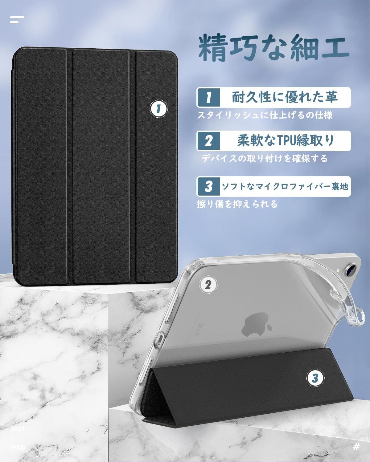 iPad Mini6 ケース 2021モデル Dadanism iPad Mini 第6世代 保護ケース iPad 8.3 インチ スマートカバー 透明感 薄型 PU レザー キズ防止 開閉式 三つ折薄型 TPU素材 スタンド機能 衝撃吸収 オートスリープ機能付き Apple Pencil2充電に対応 モデル番号:A2567/A2568/A2569 【適格請求書発行可】 ブラック