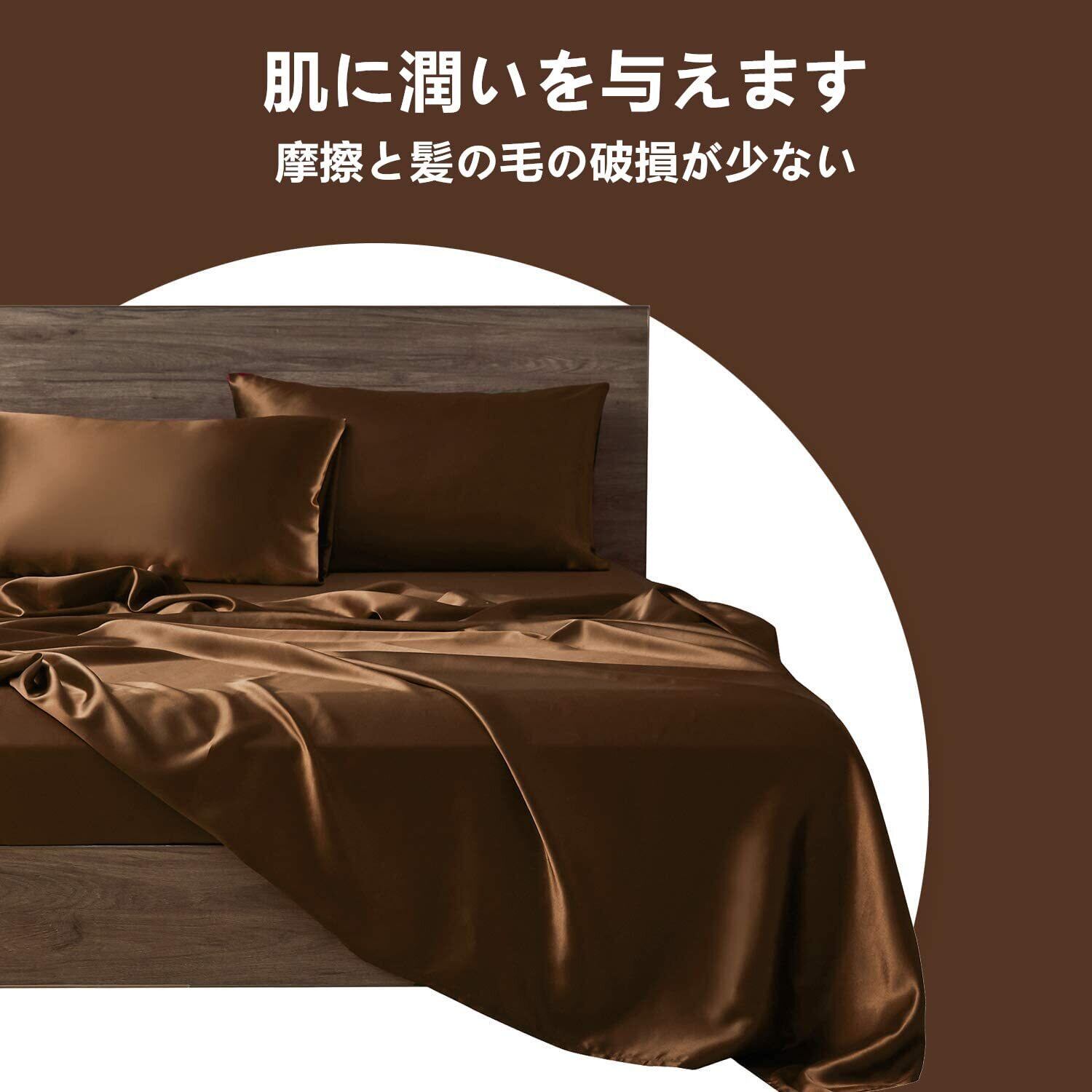 枕カバー 2枚セット サテンの枕カバー 封筒式ピローケース 美肌 美髪 両面シルクタイプ 滑らかな材質 静電気防止 (43*63, ブラウン)