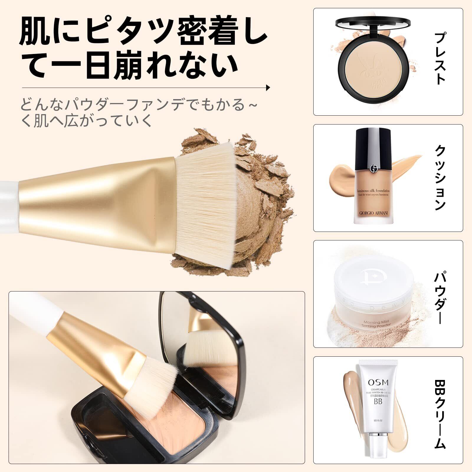【人気化粧筆・1本2役】リキッドファンデはツヤ感のある肌、パウダーファンデはハイカバーな肌と、それぞれのファンデの利点を生かした仕上がりに。天然毛よりはやや硬めですが、平たくて粉が入れやすく、ファンデーション用なら小鼻など細かい所にも付けやすいです。柄が長い方が手首の力加減が出来、扱いやすかったです。また断面がまっすぐカットされて、シェーディングを入れるにも最適で小顔効果が抜群です