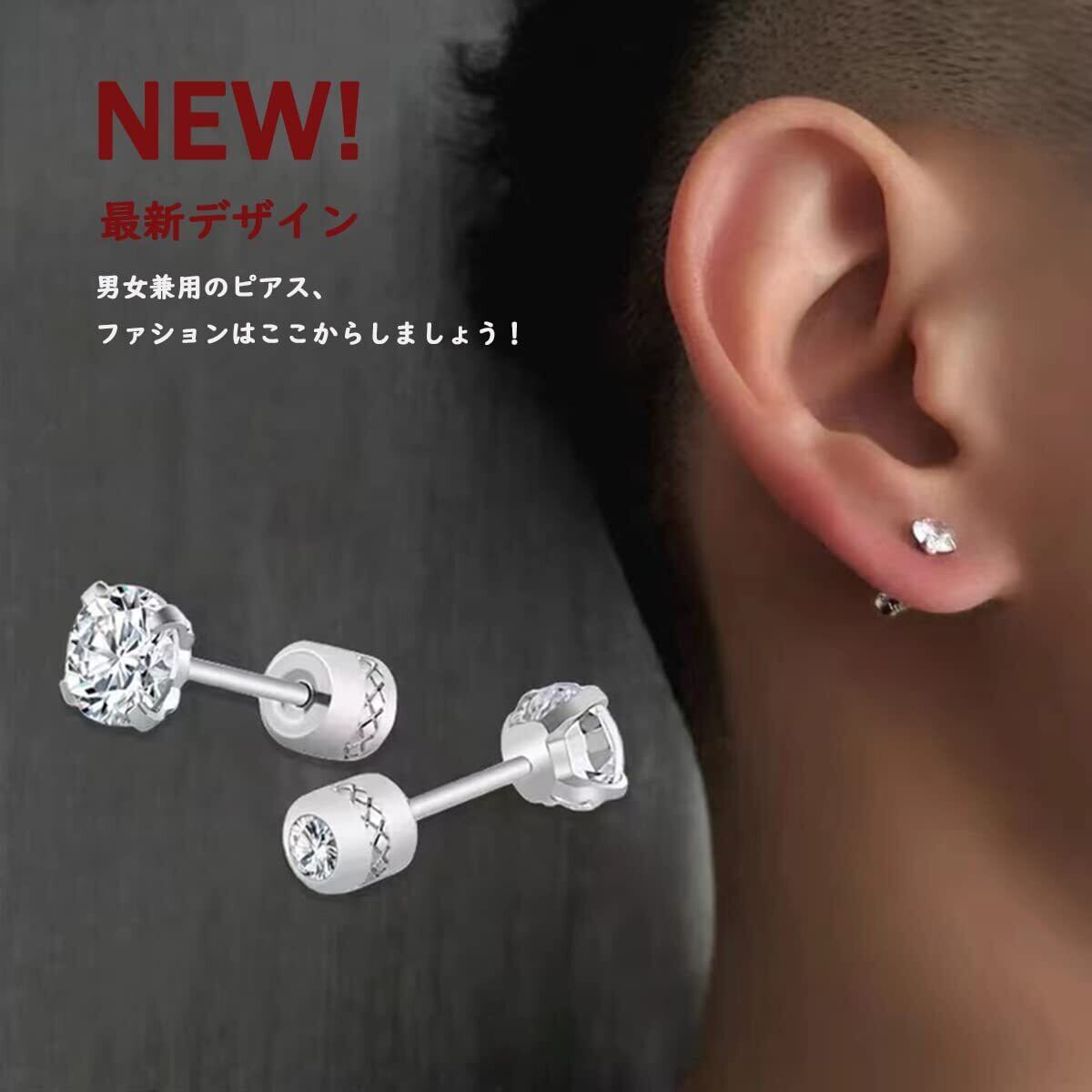 【ピアス】両耳用 材質:チタンステンレス 石:直径5mm キャッチの色:シルバー 石の色:透明 2個セット(1ペア)