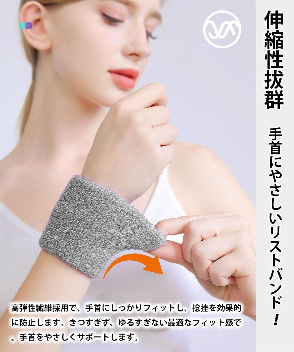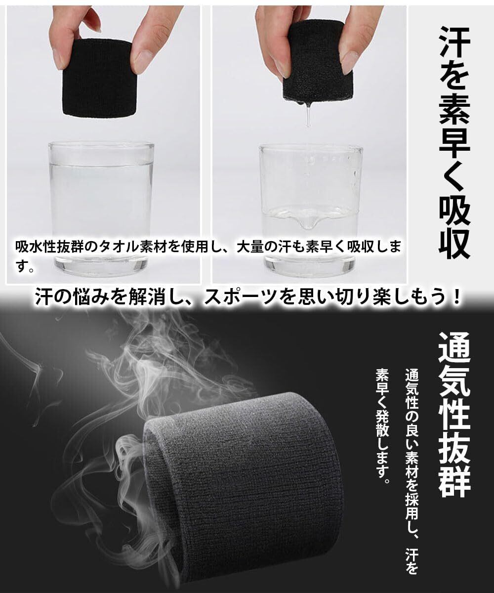 【吸汗性抜群】このリストバンドは、運動中の手首の汗をしっかり吸収するだけでなく、タオル代わりに顔の汗を拭くのにも便利です。また、洗顔や手洗い時に水が腕に広がったりこぼれたりするのを軽減・防止し、袖口を濡らしません。