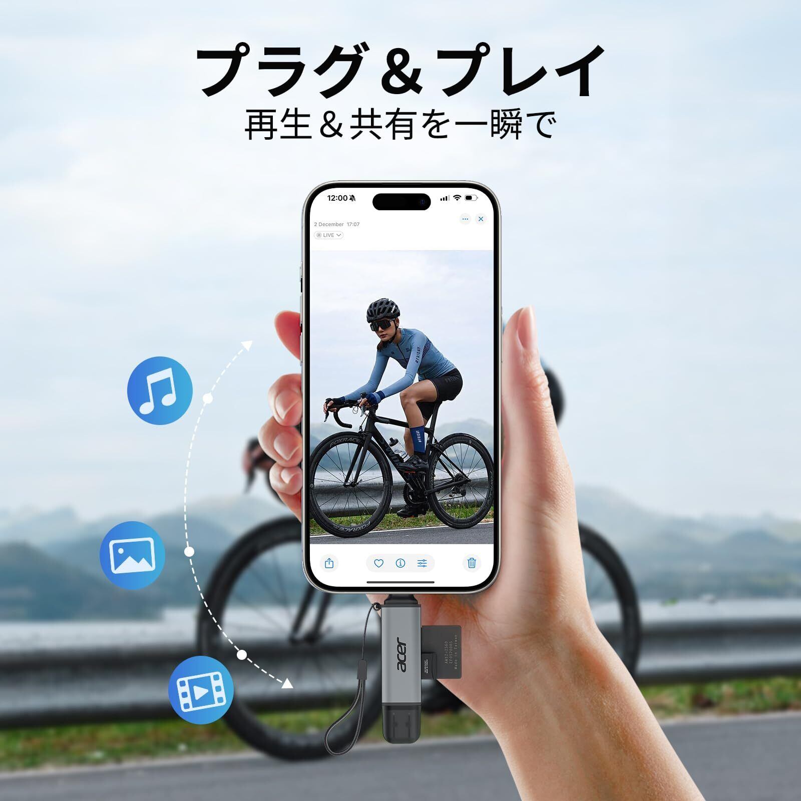 【USB 3.0 + USB-C】Acerのメモリーカードリーダーは、USB-AおよびType-Cの2つのインターフェースを搭載した多機能SD/TFカードリーダーです。USB-AまたはUSB-C対応デバイスと幅広く互換性があり、最大5Gbpsの高速転送に対応。1GBのファイルも数秒で移動できる、利便性の高いカードリーダー SDです。
