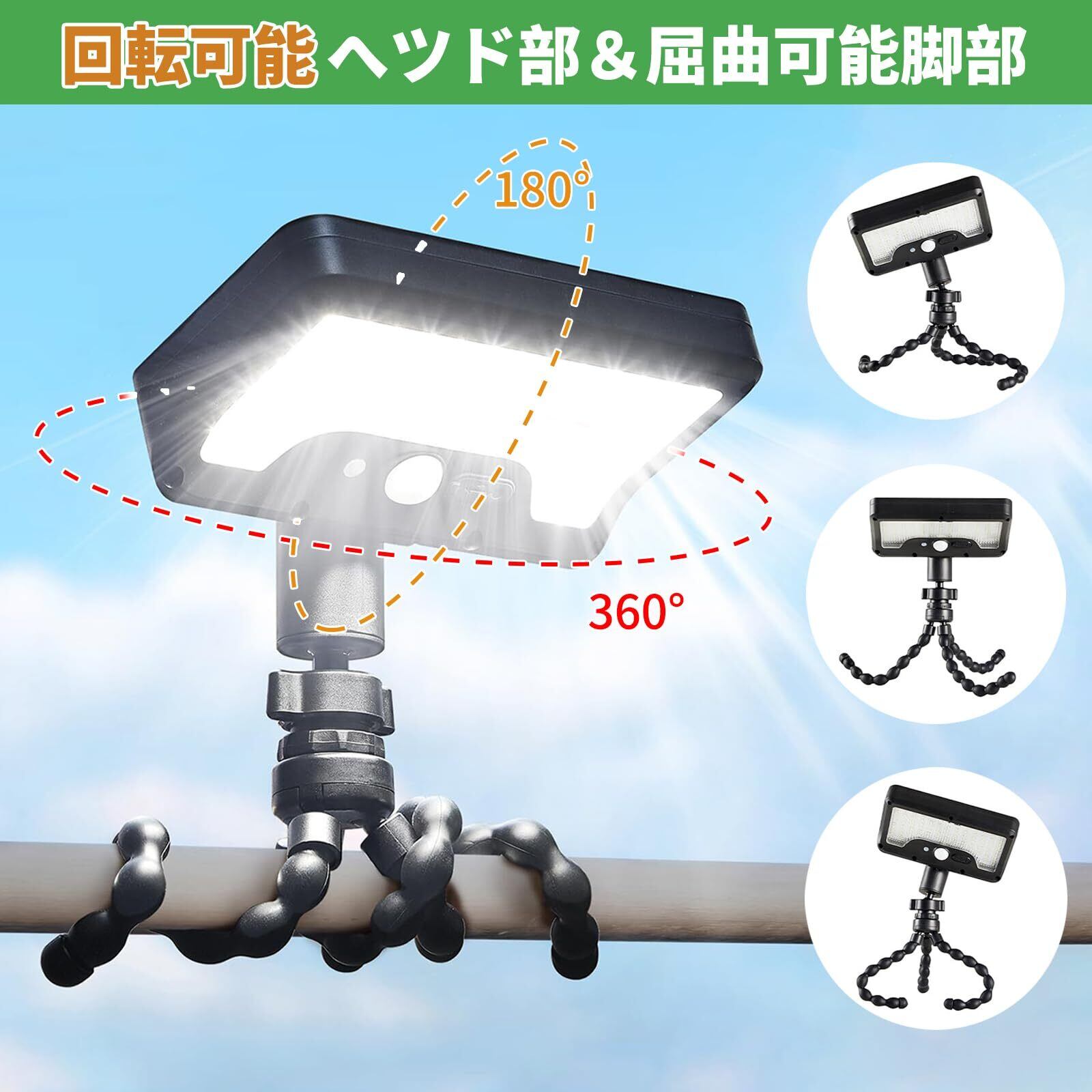 ソーラーライト 屋外 2個セットセンサーライト 人感 防水 フレキシブル三脚付 & 360度調整ランプ USB充電可 センサーライト 屋外 ソーラー 自動点灯消灯 高感度人感センサー 玄関 廊下 駐車場 庭適用 防犯 防災 停電 地震 津波 台風対策
