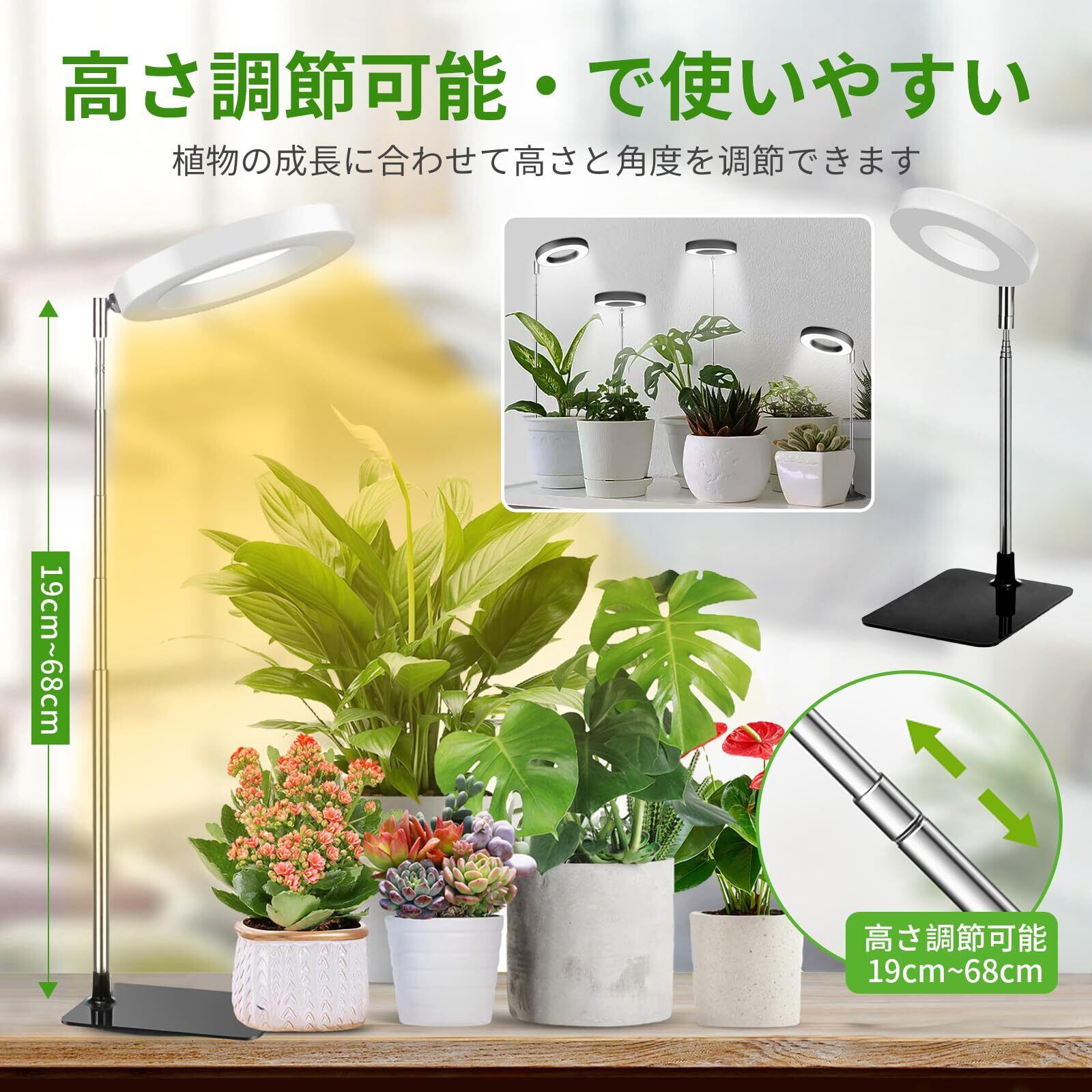 【2つの設置方法・ベース設置/挿入設置】2つの設置方法があります:1.取り外し可能な独立したベース設計、安定性を確保するために植木鉢をベースに置きます。2.調節可能なロッドを鉢植えに挿入し、希望の高さを調整するだけです。いつでもどこでも植物に十分な光を提供し、光の保護下で植物が健全に成長できるようにします。