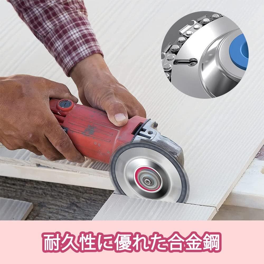 【ステンレスと硬質合金】ステンレスディスクの設計は錆びにくくて、硬質合金チェーンの切削はスムーズで、耐久性に優れます。作業中は保護措置に注意してください。