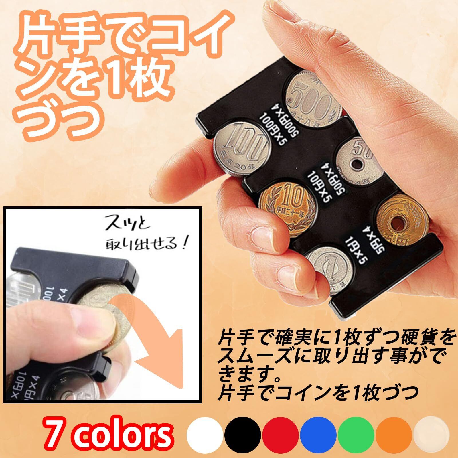 ◎6種類すべての硬貨を収納できる◎ 500円硬貨が4枚、100円・50円・10円・5円・1円硬貨が各5枚収納できる、プラスチック製のホルダー式コインキャッチャーです。硬貨が落ちない特殊なコインストッパーが付いていて、1枚だけもしっかりホルダーにとどまります。その上、片手で硬貨を取り出せるので便利です。ホルダーを収納できる、別売りの専用ケースも販売されています。