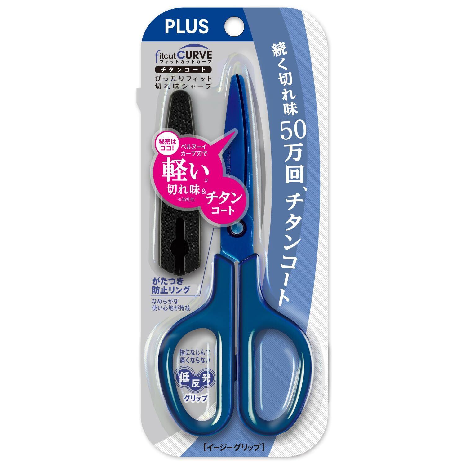 【人気商品】プラス はさみ 汚れ・サビに強い フィットカットカーブ チタン 切れ味継続加工 ブルー SC-175ST 34-518