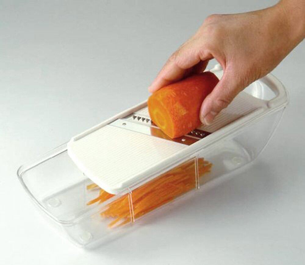 素材・材質:収納容器・受け容器=スチロール樹脂(耐熱温度70度)、調理プレート・皮引き・安全ホルダー=ABS樹脂(耐熱温度80度)、スライス刃・皮引き刃=ステンレス刃物鋼、クシ刃=ステンレススチール
