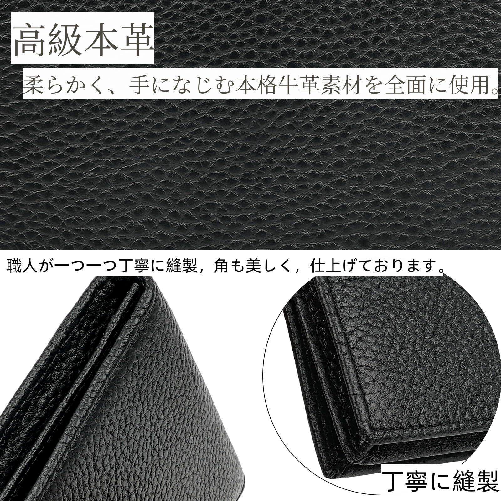 【商品詳細】素材:牛革 ◆カラー:ブラック ◆サイズ:約11cm×約7.cm×約2cm ◆仕様:ポケット×5 ◆容量:名刺50枚収納可