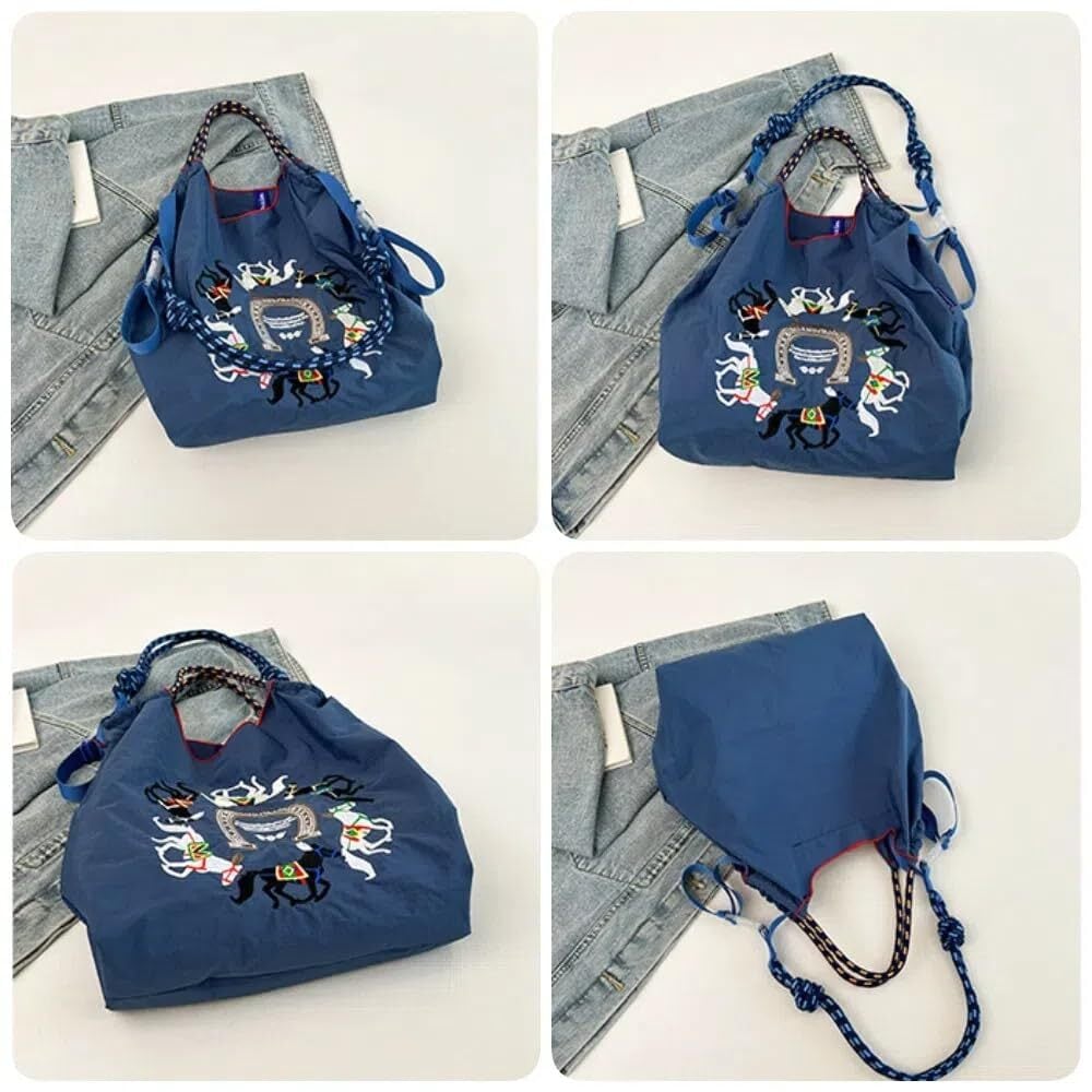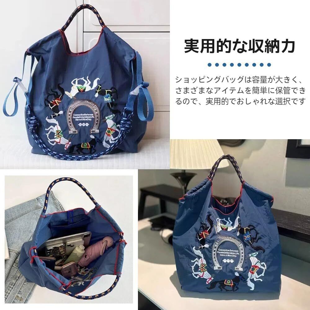 【在庫処分】[Jravezt] ボールアンドチェーン 刺繍 エコバッグ お洒落な 買い物袋 ショルダーストラップ1本無料 環境にやさしい布 トートバッグ 繰り返し使用 リュック 軽量 コンパクト 折り畳みバッグ 刺繍ショッピングバッグ ハンドバッグ