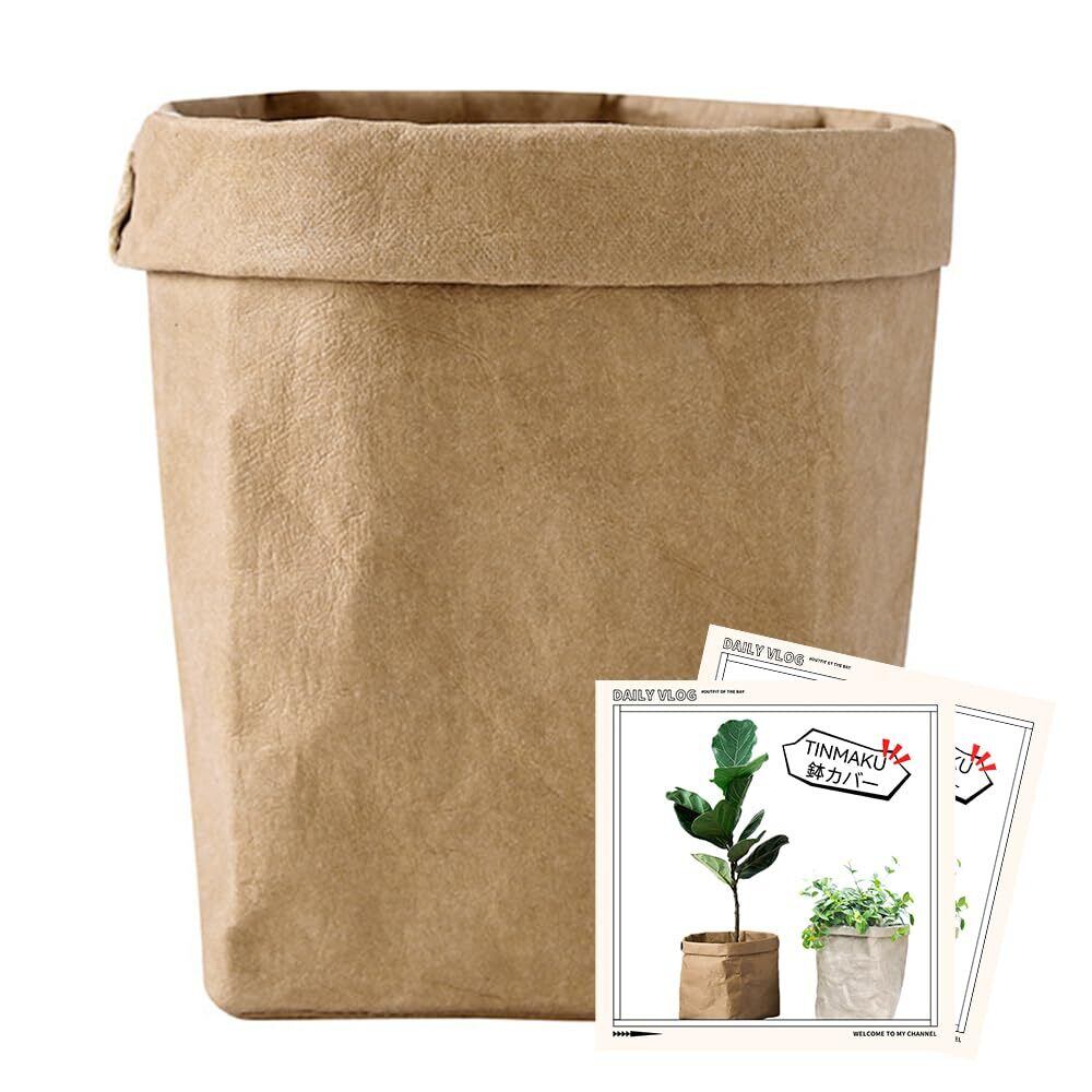 鉢カバー 植木鉢カバー 洗えるクラフト紙 観葉植物 プランターカバー おしゃれ 北欧 室内 シンプル インテリア 野菜果物収納 浴室用 旅行用 キッチン用 (XL (9号鉢相当), ブラウン)