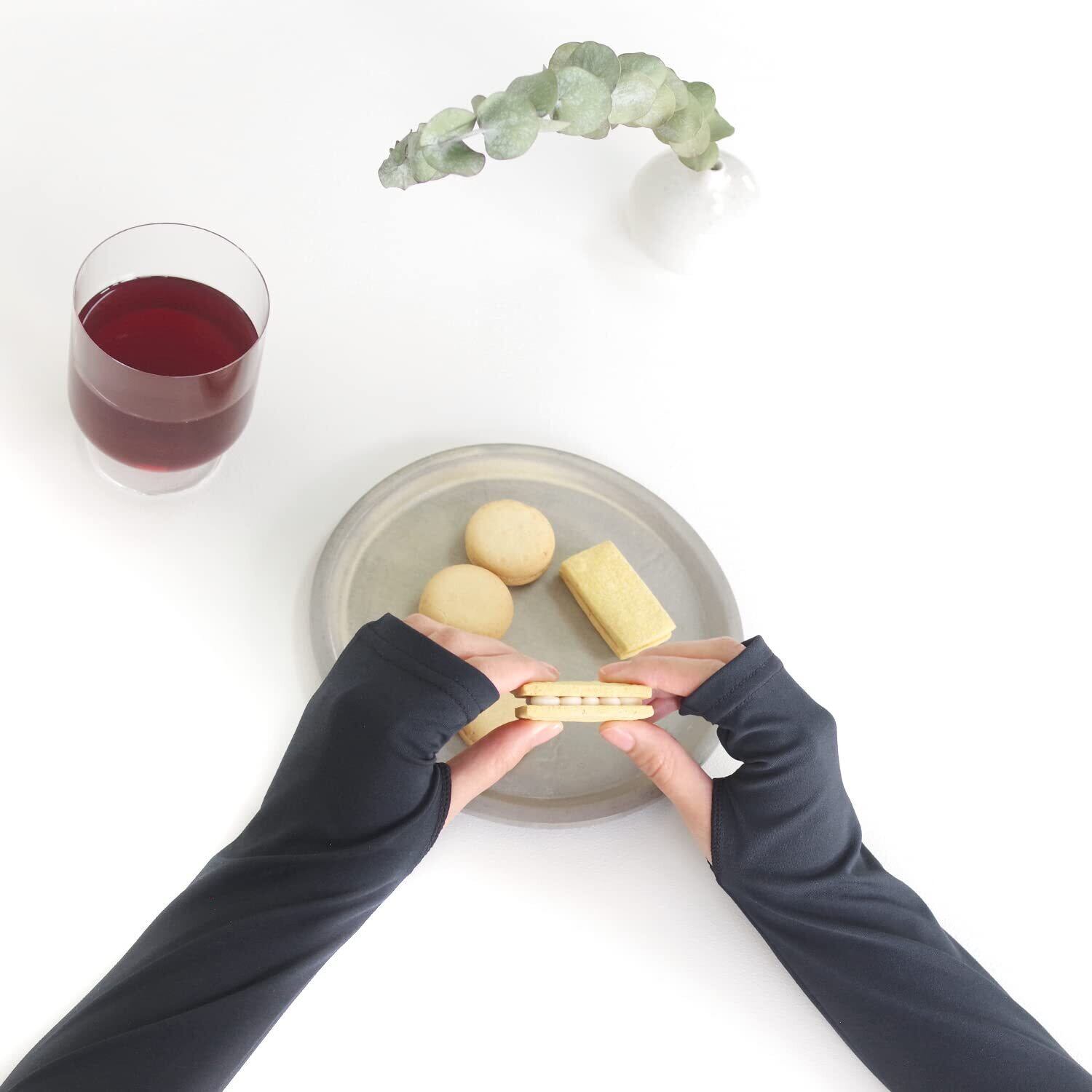 どなたでも着用しやすい定番サイズ。指先がロングカットデザインで、手の甲から指の第二関節まで日差しからしっかりガード。