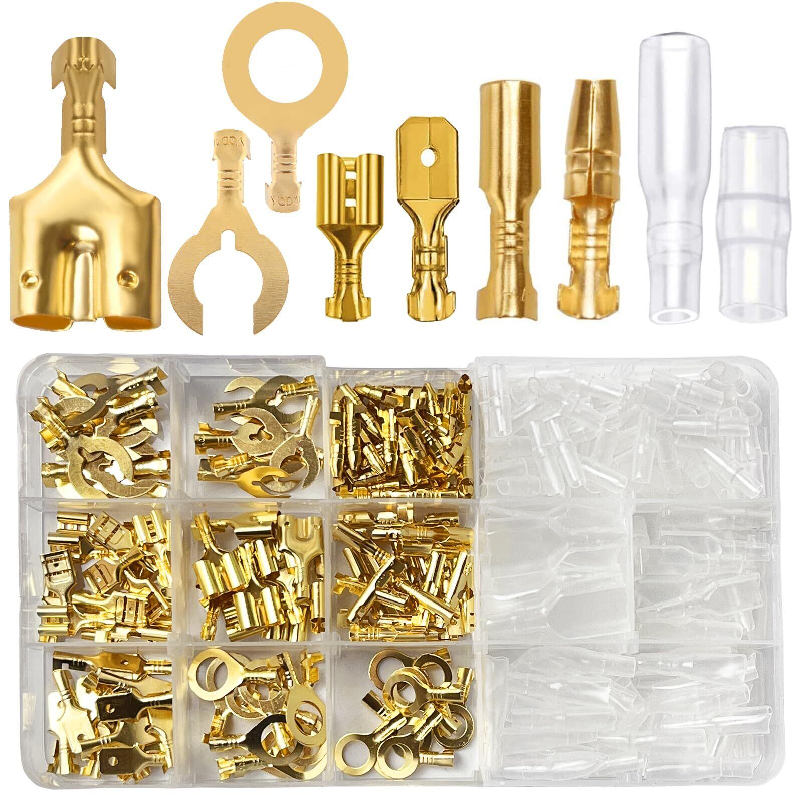 【優れた材質】端子は高品質な真鍮製で、錆び止め加工が施されて、良好な電気伝導性と耐久性があります。この接続端子セットは、十分な数のオス・メス端子、絶縁されたオス・メスチューブ を備えていますので、安心してお使いください。