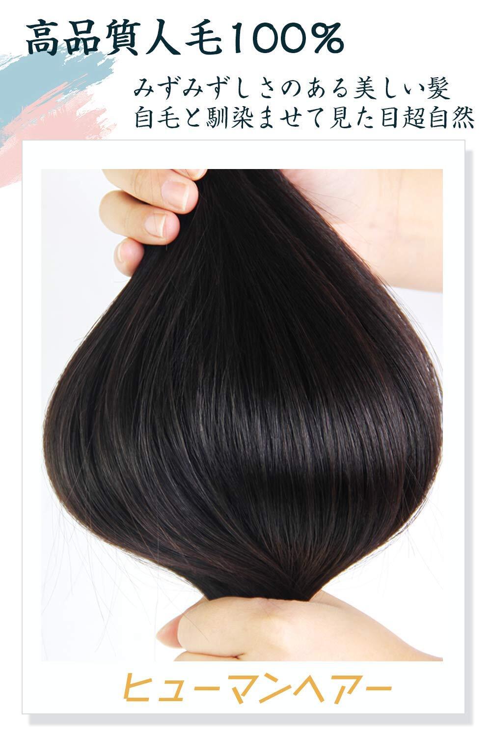 高品質を極めた人毛100%:高級人毛を使用することにより、ナチュラルな毛質と柔らかさを持つ色合いがあります。自毛との相性抜群、違和感まったくありません、見た目も風合いも超リアルに仕上げます