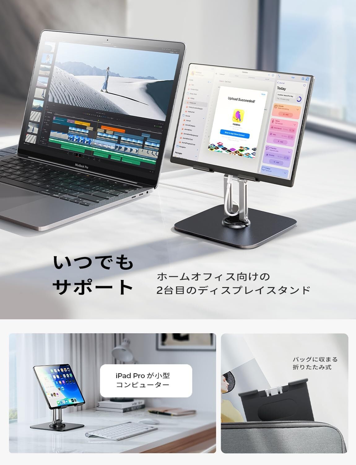 調整機能を新たに搭載し、iPadスタンドがさらにアップグレードされました。任意の角度への簡単調整はもちろん、2つの調整モードを駆使して、ビデオ通話、読書、映画鑑賞、ライブストリーミングなど、あらゆるシチュエーションに最適な視点を実現します。座ったり立ったりする場所に応じて最適な高さや角度に調整可能で、最高の快適さを提供するタブレットスタンドは、デジタルライフを格上げします。