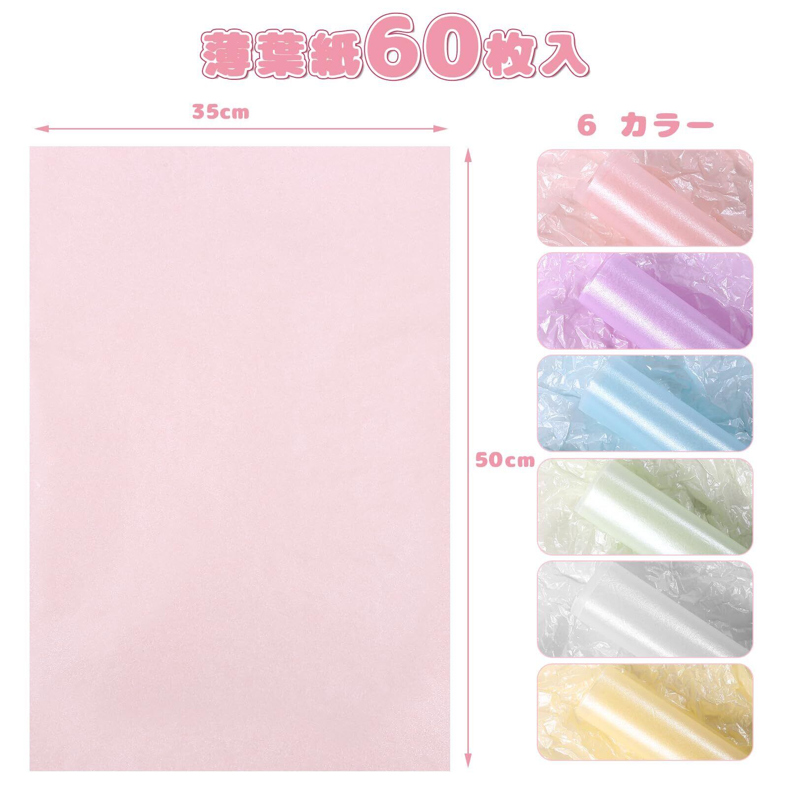 Kesote 薄葉紙 お花紙 おはながみ キラキラ光沢感あり 透ける折り ラッピングペーパー 包装紙 60枚入 フラワーペーパー ラッピングペーパー ペーパーフラワー 紙 6色 パールカラー 紙 35x50cm
