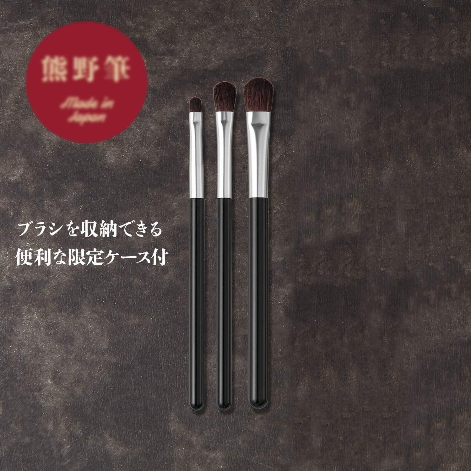熊野筆 アイシャドーブラシ S M L 3種 簡易ケースセット メイクブラシ 3本セット 1セット 3個 (x 1)
