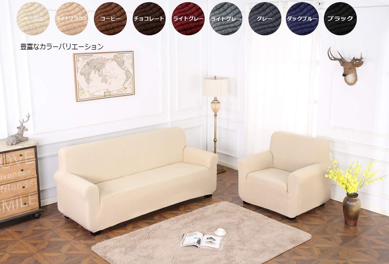 【滑り止め】このソファーカバーは伸縮性の高い素材、伸縮性のある裾が縫い付けられており、ソファーをしっかりと包み込み、しっかりとフィットし、滑り落ちにくいです。抜群の伸縮力でソファカバーが変形しにくい、簡単に着脱でき。肘付きソファーに適用します。