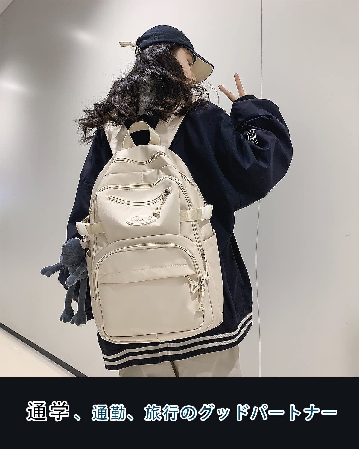 【大容量&多機能ポケット】15.6インチノートパソコン専用の独立コンパートメントを搭載。メイン収納スペースは本、昼食、軽量衣類、学用品、旅行用品など、日常の必需品をたっぷり収納可能。フロントには鍵やペン、鉛筆を収納できるファスナーポケットを配置。両サイドには水筒や傘を入れられるポケットを用意し、すべてのアイテムを整理して使いやすさを追求しました。※画像はイメージです。動物のペンダントは付属しません。