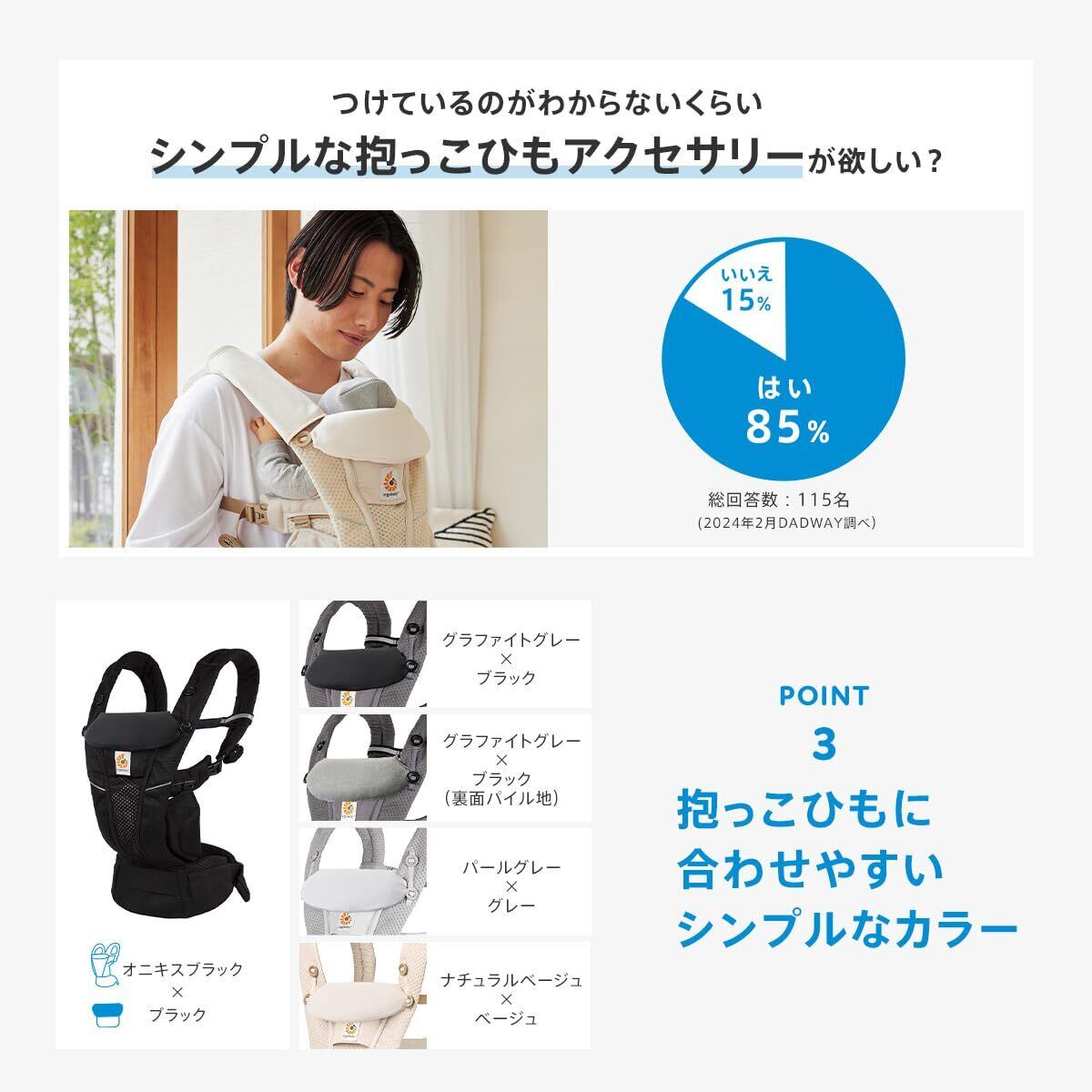 抱っこひもをキレイに保つ必需品。 赤ちゃんの汗かきポイント No.1 は首まわり! 毎日使う抱っこひもを清潔に保てます。 さらっと乾きやすい吸水速乾生地と、ふんわりパイルのリバーシブル。 内側のポリウレタンラミネートコーティングで、染み込みをしっかり防ぎます。 エルゴベビーの抱っこひものために設計された、エルゴベビー公認アクセサリー。 ヘッド&ネックサポートにかぶせるだけで簡単装着。 取りつけたまま、ヘッド&ネックサポートを上げ下げできます。 Ergobaby OMNI、ADUPT対応。