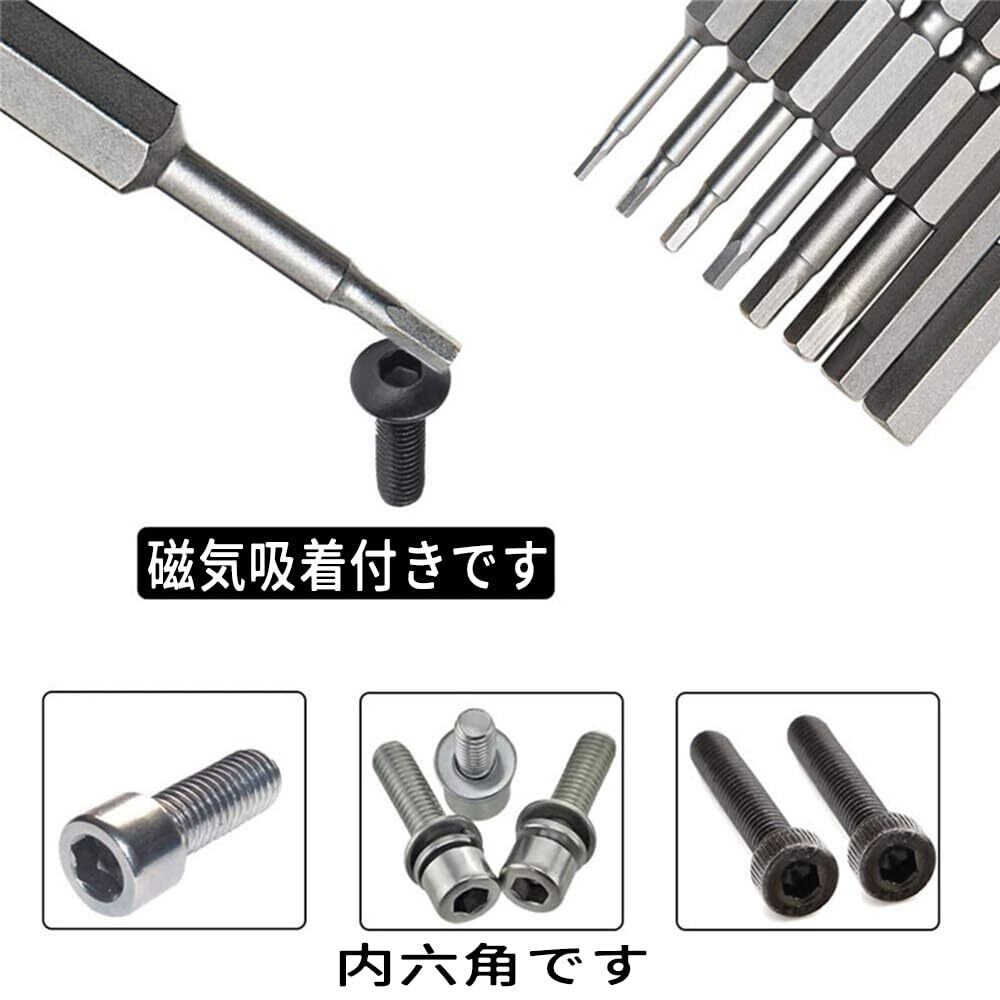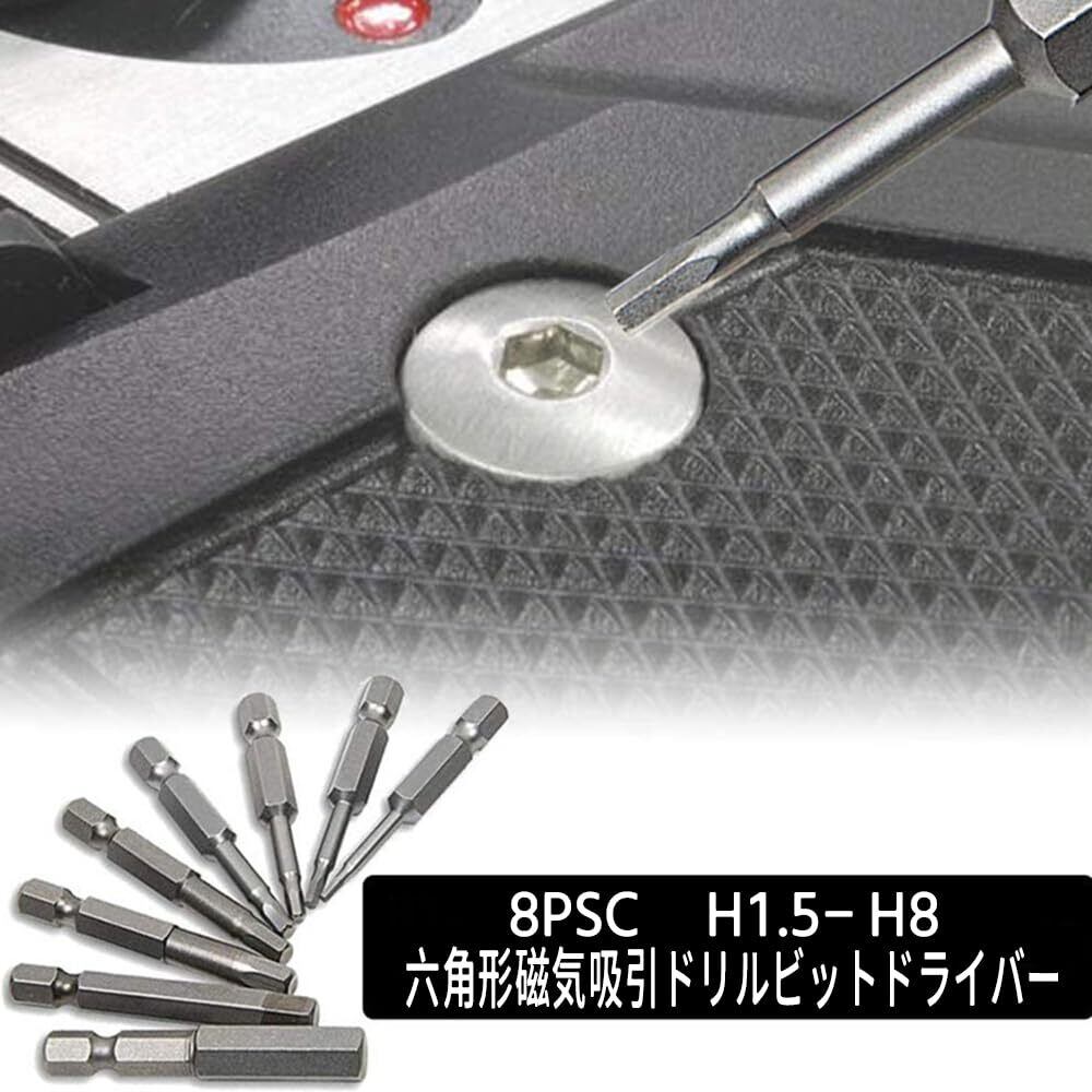 六角レンチビット 8本セット インパクトドライバービット 精密ドライバー 六角轴 6.35mm 磁気吸着 電動ドライバー ビット 1.5mmー8mm ドリル ビット工具 50mm長六角ビット