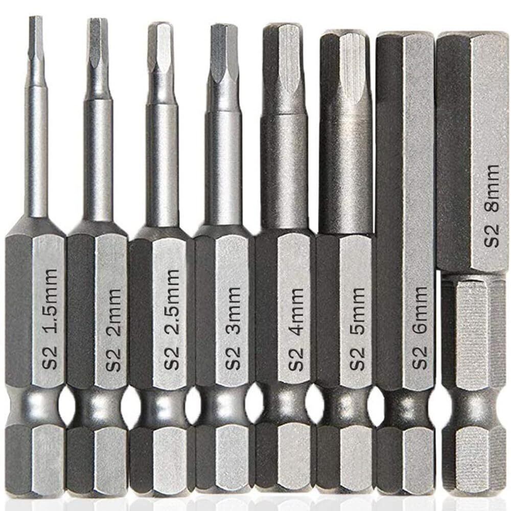 【2022最新】六角レンチビット 8本セット インパクトドライバービット 精密ドライバー 六角轴 6.35mm 磁気吸着 電動ドライバー ビット 1.5mmー8mm ドリル ビット工具 50mm長六角ビット