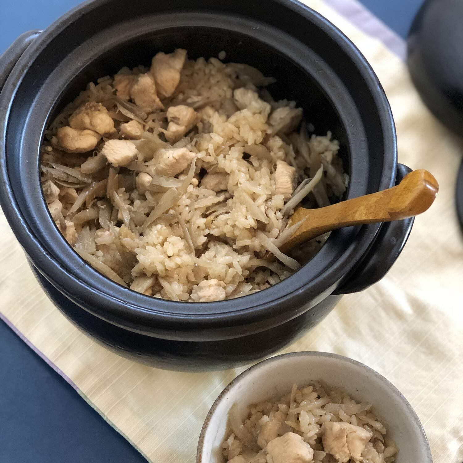 佐治陶器 ご飯鍋 黒 19.5cm 萬古焼 絶品 ごはん鍋 (中蓋付) 3合 30-1