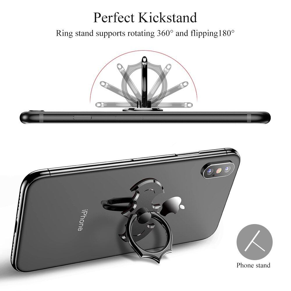 OATSBASF バンカーリング ブラック 薄型 スマホリング かっこいい 携帯用リング 指リング 携帯 落下防止 バットリングホルダー スマホ全種類/タブレット対応 (黒銀1)