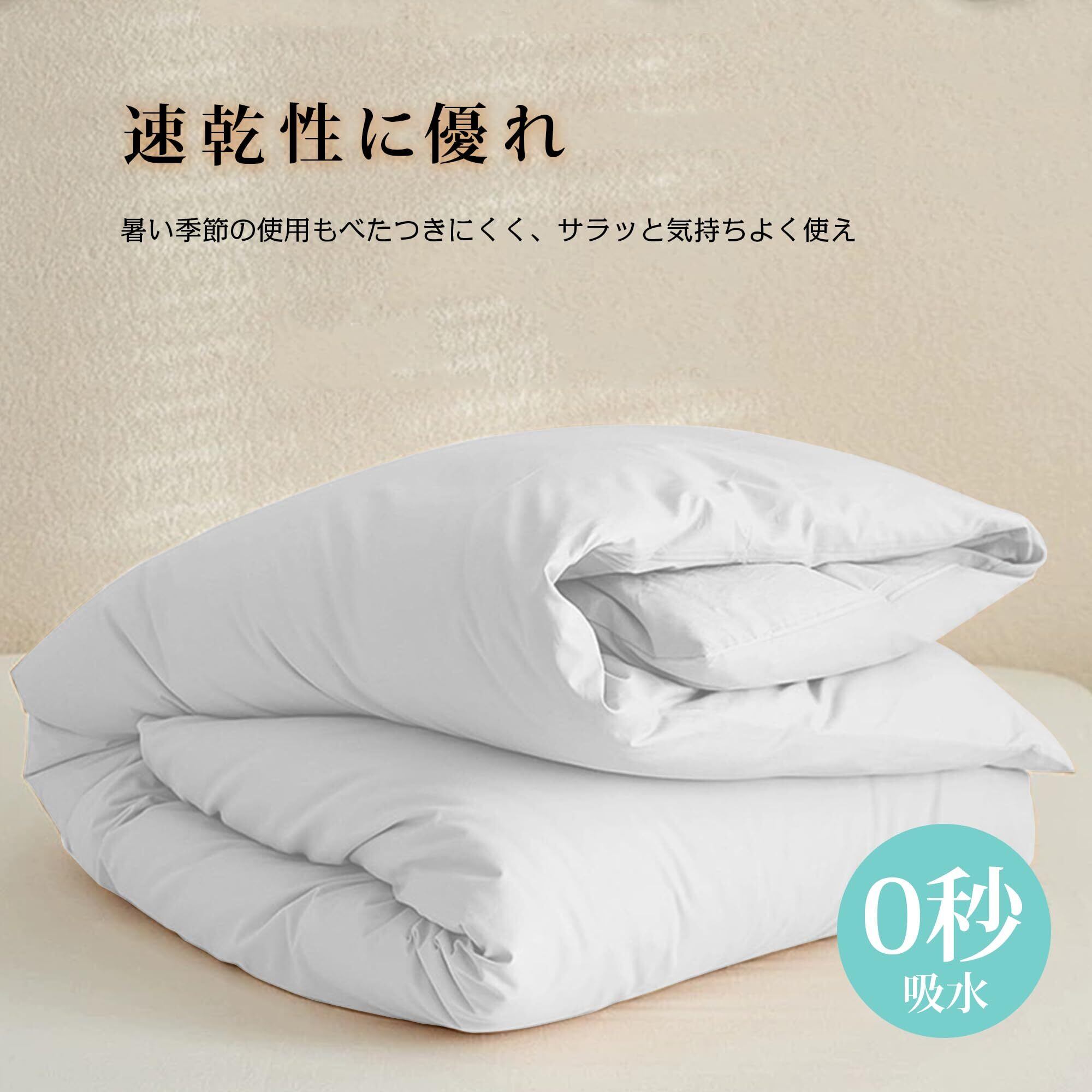 【速乾性に優れ 0秒で吸水】かけ布団カバーは優れた吸湿性・通気性に優れ、汗をかいてもベタつかずサラサラ感を保ち、乾きも早いです。サラッとした肌触りでベタつきません。しっとりと肌に触れると心地よく、毎日快適に眠れて、一年中お使いいただけます。