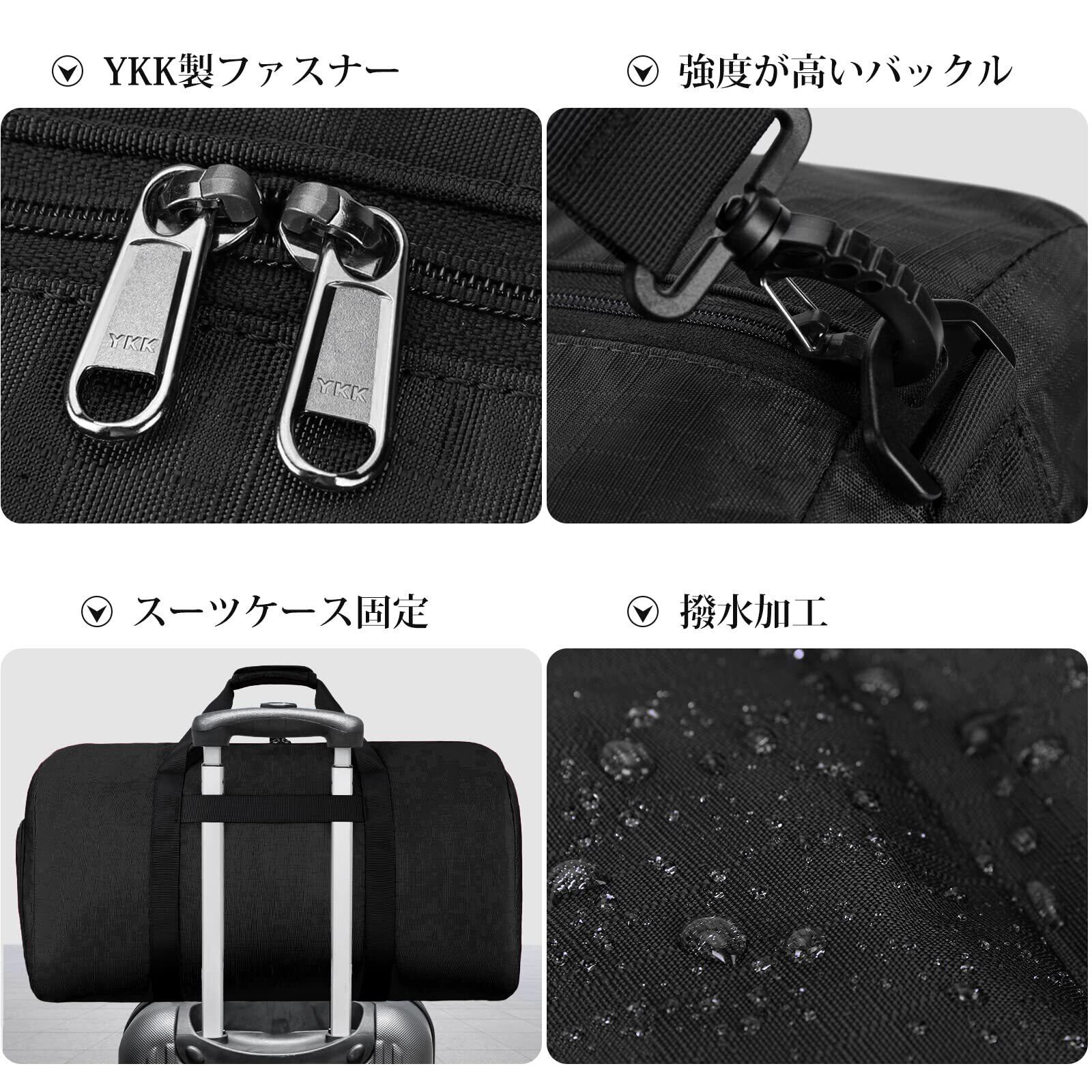 折りたたみ ボストンバッグ メンズ 大容量 YKKファスナー 修学旅行 トラベル スポーツバッグ 5色 40L 65L 80L 斜め掛け スーツケース固定 靴収納ポケット 撥水加工 軽量 ジム 出張 black-65L