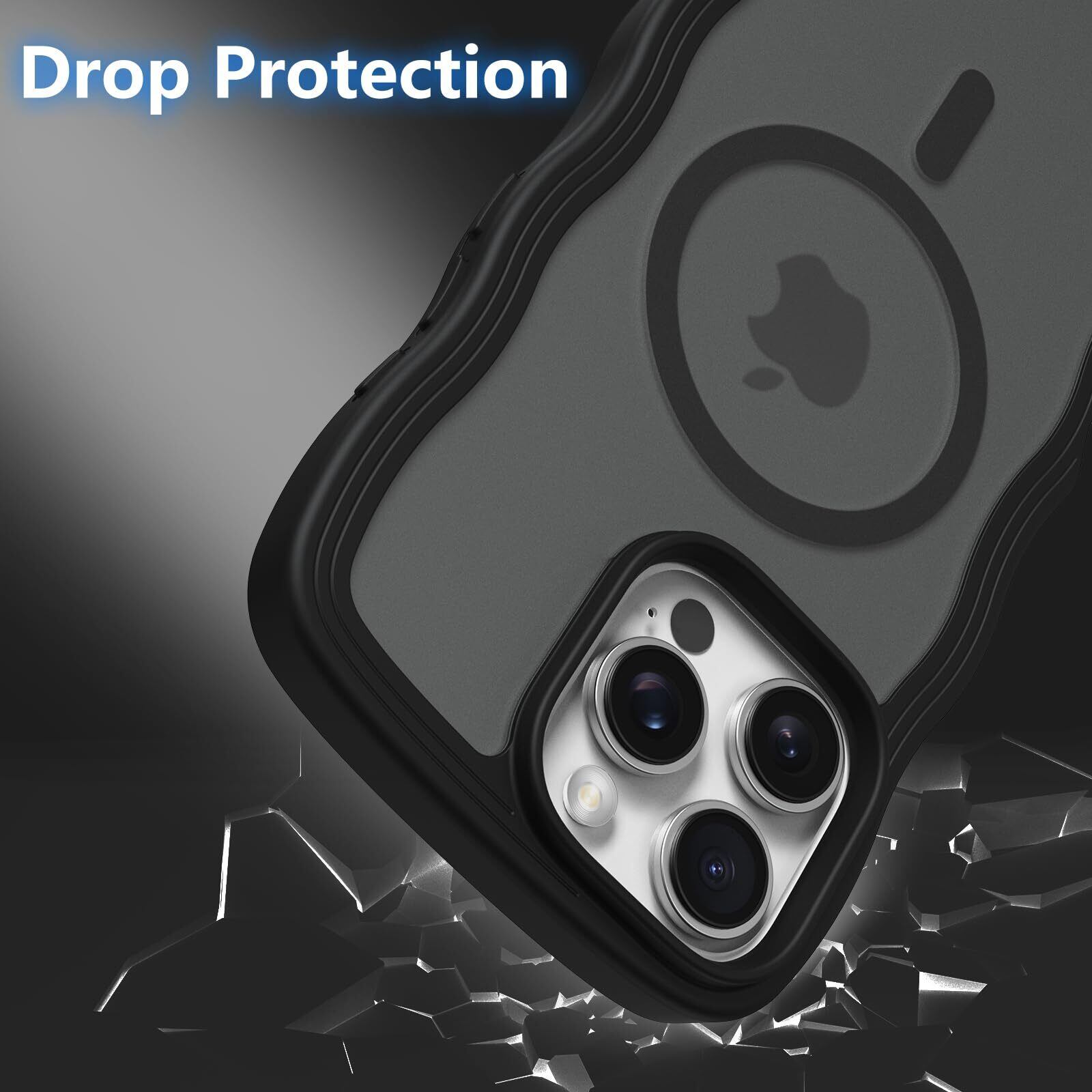 ZTOFERA iPhone 15 Pro Maxケース用,【MagSafe対応】キュートなウェーブの半透明マットスマホケース 女性用 女の子用 男性用 iPhone 15 Pro Maxケース,ブラック