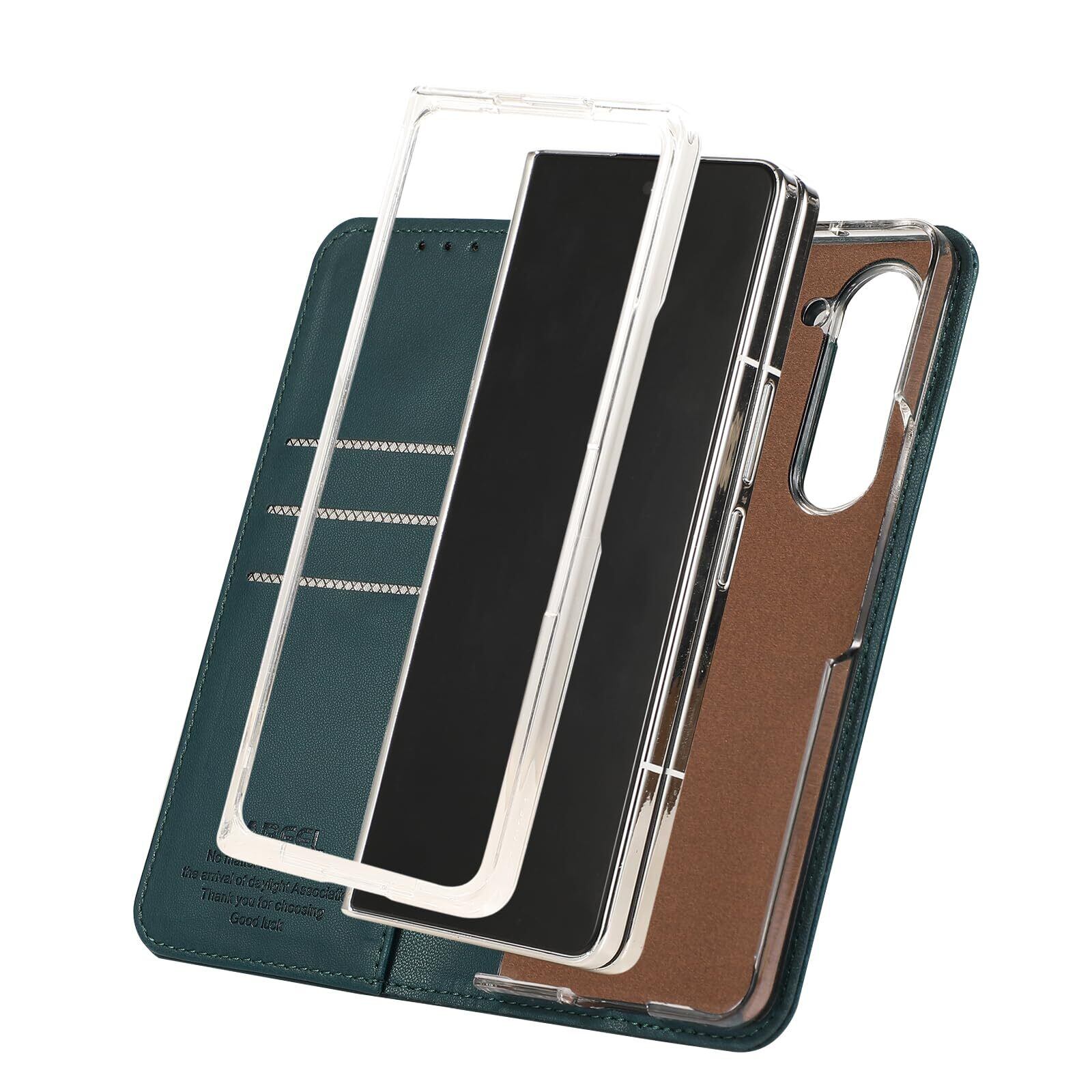 Galaxy z Fold 6 ケース 手帳型 ギャラクシー Z フォールド6 カバー 財布型 高級PUレザー 耐衝撃 マグネット式ボタン スピーカーホール付き カード収納 大容量 3枚 横置きスタンド機能 耐摩擦 Ayakumo グリーン