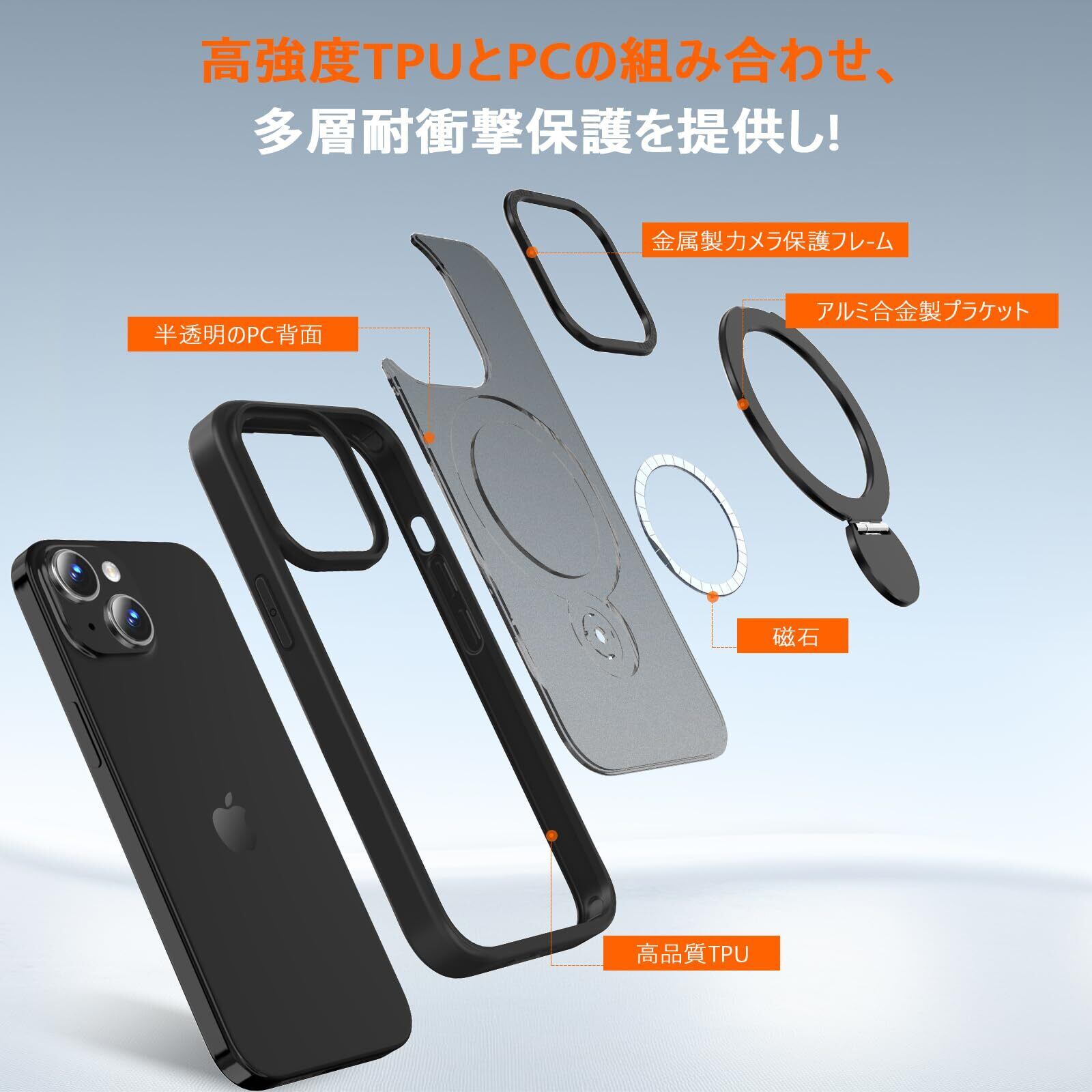 【新春セール】iphone 15 plus 用 ケース MagSafe対応 ワイヤレス充電 いphone15 plus ケース 高耐久性 米軍MIL規格 アイフォン 15 plus カバー リング スタンド マグネット搭載 スマホケース iphone 15 plus 隠し収納式 縦横両対応 スマホカバー アイフォン 15 plus 全面保護 軽量 マット仕上げ 半透明(6.7インチ)ブラック【SHANGHAO】