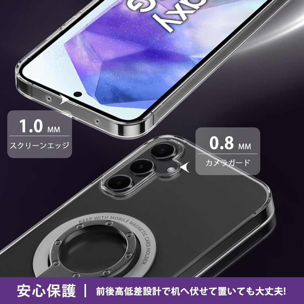 Galaxy A55 5G ケース SC-53E MagSafe対応 透明 金属リング付き ギャラクシー A55 クリア スマホケース タンド機能 ストラップホール付き 擦り傷防止 滑り止め 落下防止(Galaxy A55 5G 透明ケース)