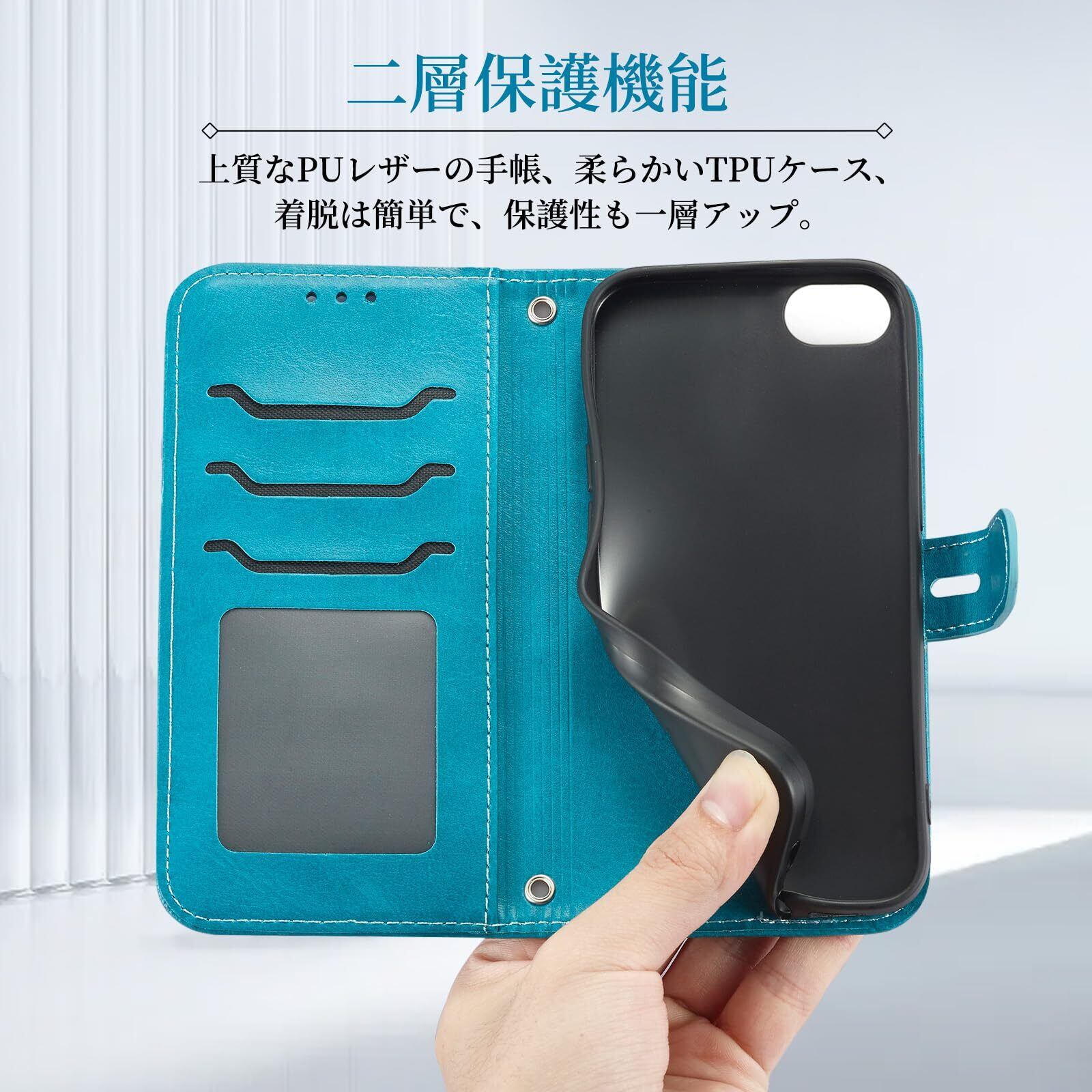 【素材:高級PUレザーとアップグレードしたTPUケース】本製品は厳選されたPUレザーを採用し、エンボスの猫柄が特徴です。レザー自体が水分をはずみ、汚れやシミが付きにくい仕様です。肌触りのような感じで、手汗が出てきても滑りにくいです。インナーケースは弾力あるTPU製で、ケースの一番右したのところにストラップホールもあり、お好きな小物とかお付けられます。柔らかく耐衝撃が強くなり、着脱もスムーズで、不意な落下からスマホをしっかりお守れます。