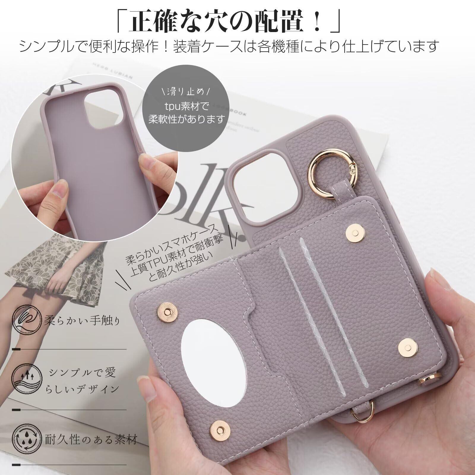 ダーケースです。機能性とエレガントを両立させたショルダーストラップのスタイリッシュなケースです。財布とスマートフォンの合わせて、普段の生活をもっと快適に!