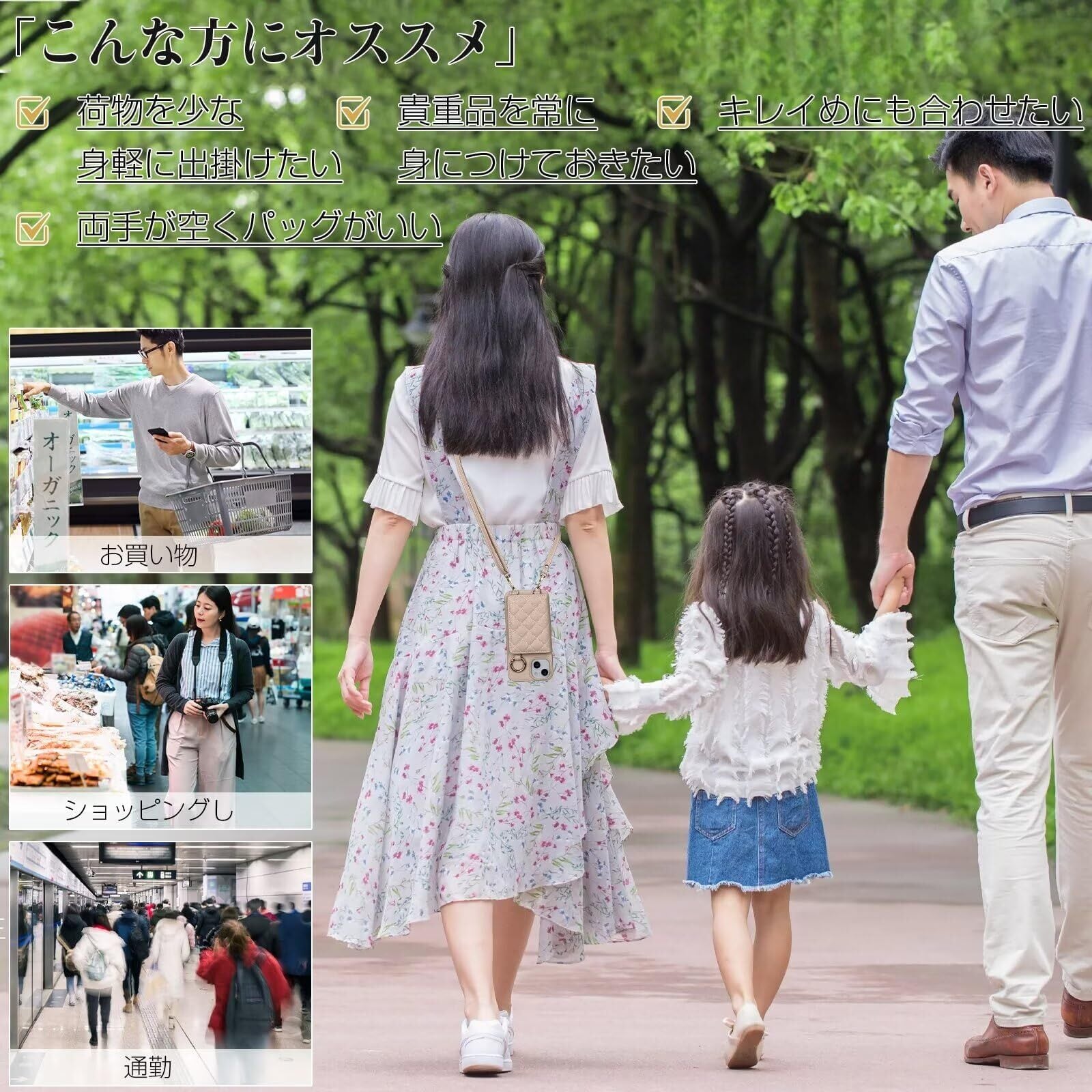 【便利なストラップ付き】調節可能なショルダーストラップ、斜めがけや肩掛けができます。ショルダーストラップは飾るだけでなく、スマートフォン使用時の落下防止にも役たちます。ショルダーストラップは最大140cmまで、高さ調節が可能なショルダーストラップ、日常生活、日帰り旅行、アウトドアなどに最適です。