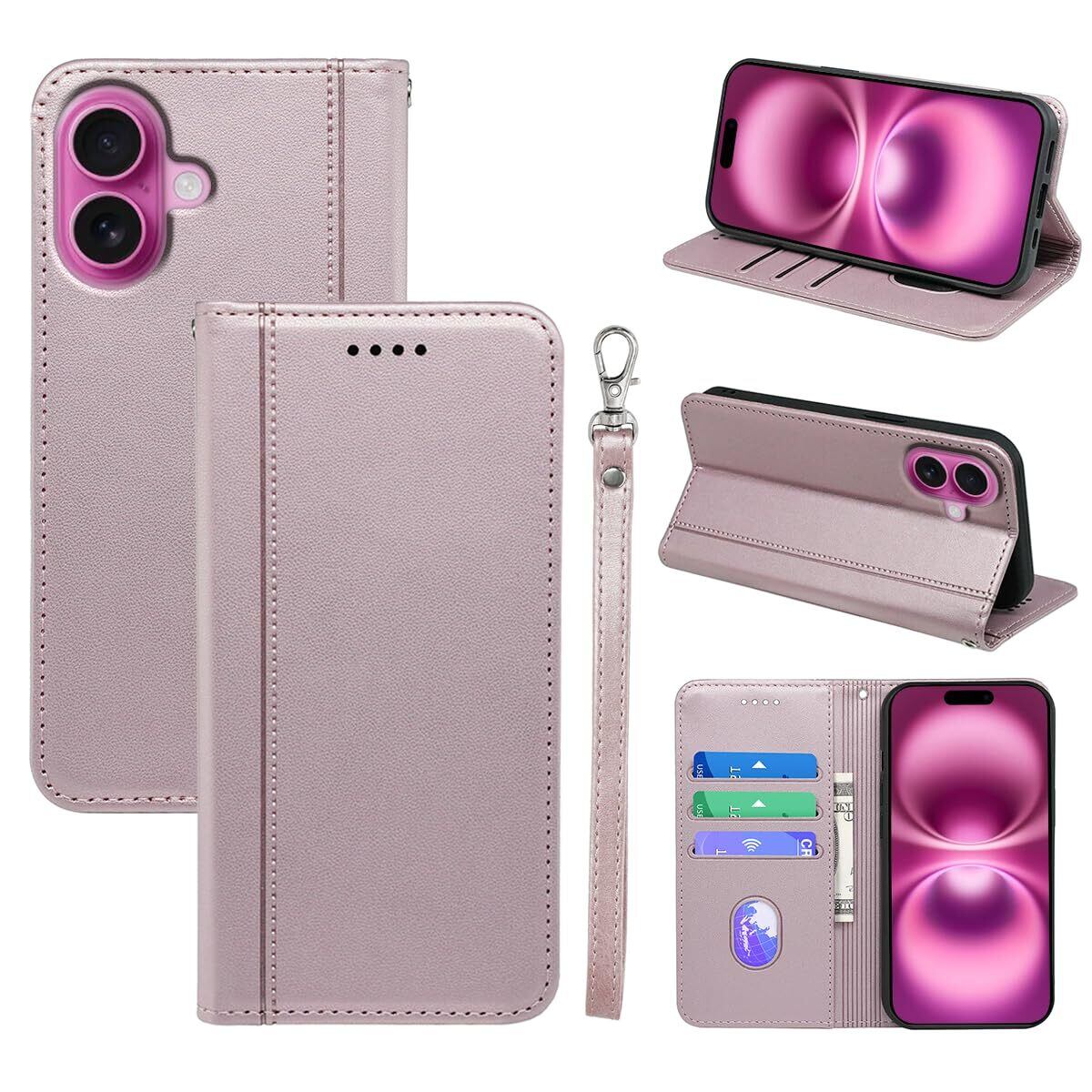 【2022最新】iphone16 plus ケース 手帳型 iPhone 16plus ケース手帳型 いphone16 plus 手帳型ケース カバー puレザー 耐摩擦 耐衝撃 全面保護 マグネット式 スタンド機能 カード収納 手触りが良い【内側の黒いTPU】スマホケース スマホカバー(アイフォン 16plus カバー 手帳型) (ローズゴールド)