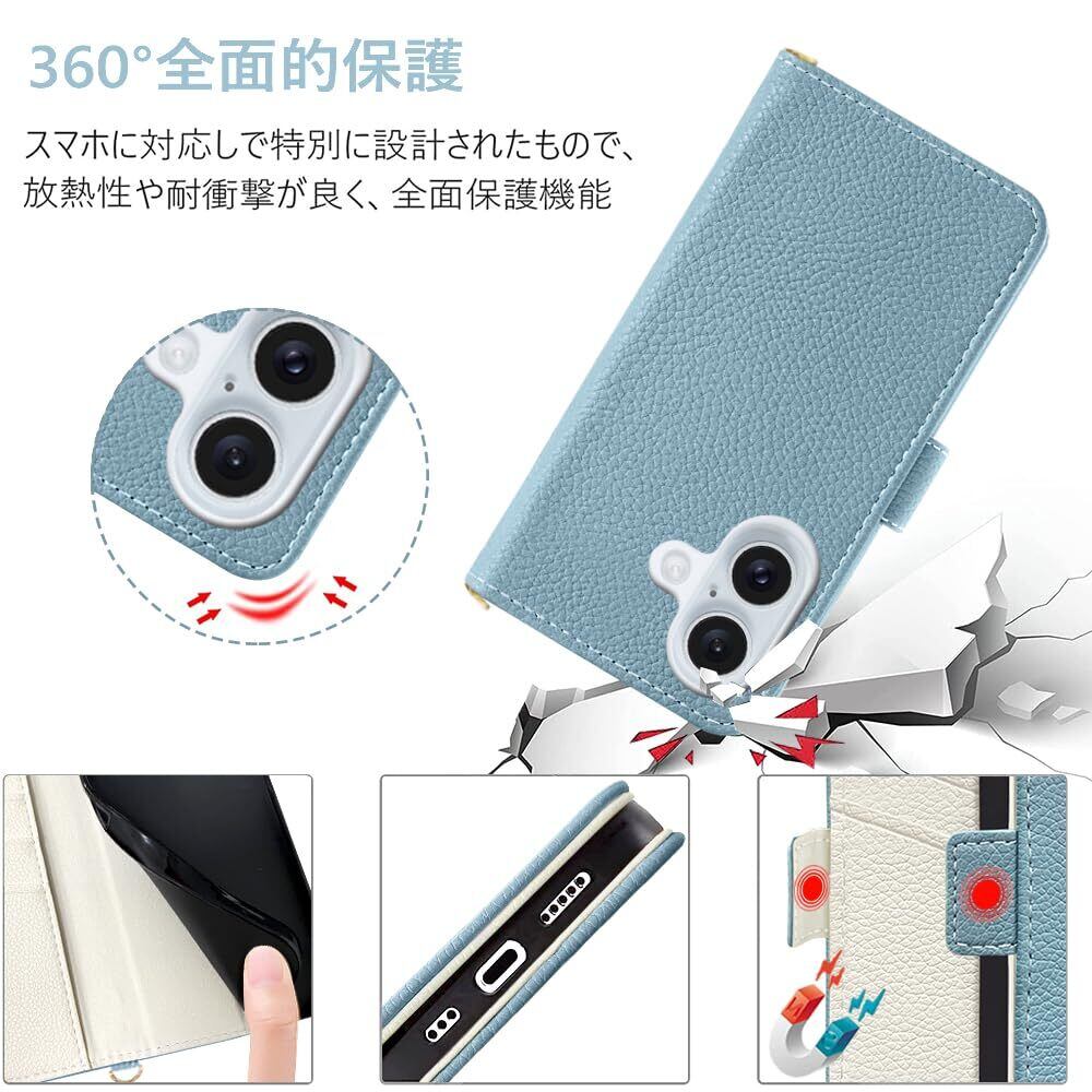 【2022最新】Kahper for iPhone16 ケース 手帳型 おしゃれ いphone16 ケース 手帳型 ショルダー アイフォン16 手帳型 肩掛け スマホケースiphone16 財布型 女性 マグネット式 カード収納 スタンド機能 携帯カバー iPhone16 可愛い 高級PUレザー 耐衝撃 擦り傷防止 防塵 軽量 放熱性 全面保護 人気 バイカラー 6.1インチ対応(ブルー メ アイボリー)