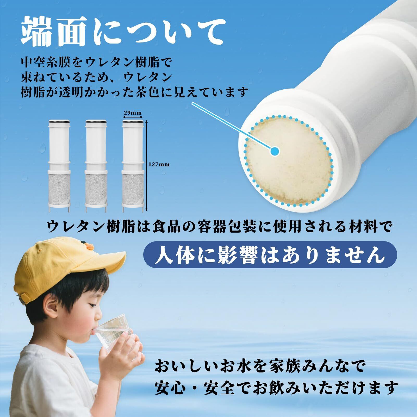 高性能タイプ:高性能活性炭を使用し、コンパクトさを実現しました。濾過材料は活性炭、不織布、中空繊維膜(原材料アルミン酸カルシウム)を採用し、水道水中の不純物を吸着することができる。フィルター部に抗菌性があるため、カートリッジ内部で雑菌が繁殖しにくくなります、いつでも安心な浄水をお届けします。
