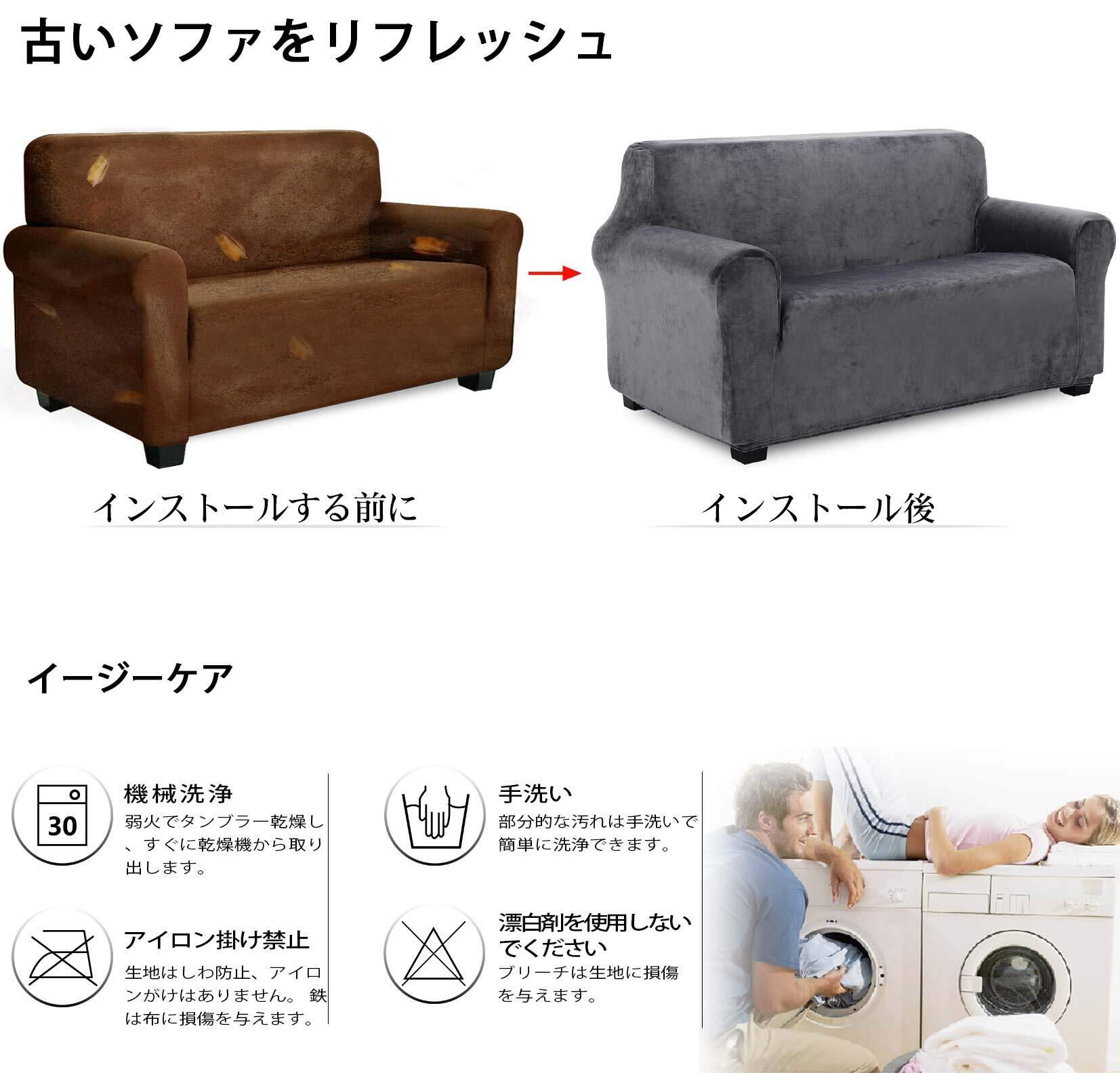 抜群の伸縮力でソファカバーが変形しにくい、簡単に着脱でき、洗濯可能、肘付きソファーに適用します。